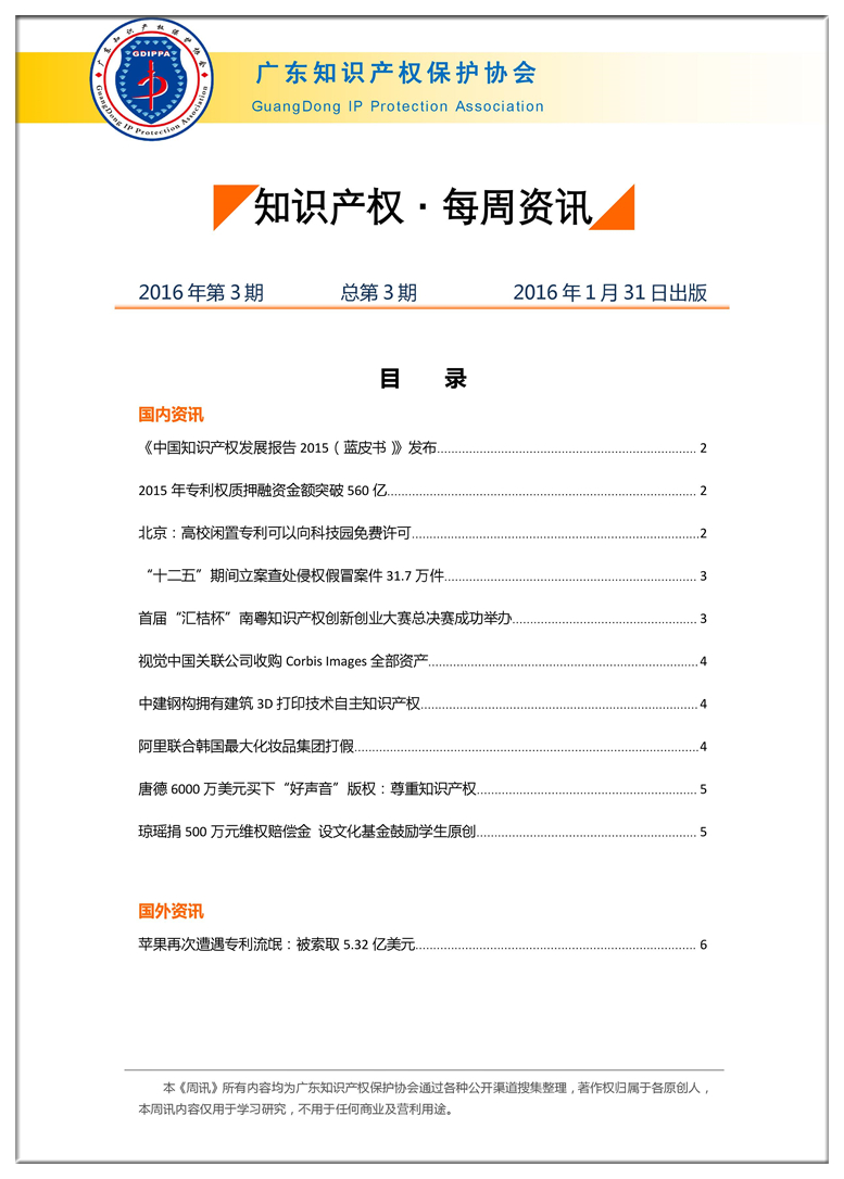 广东知识产权保护协会第3期:知识产权·每周资讯