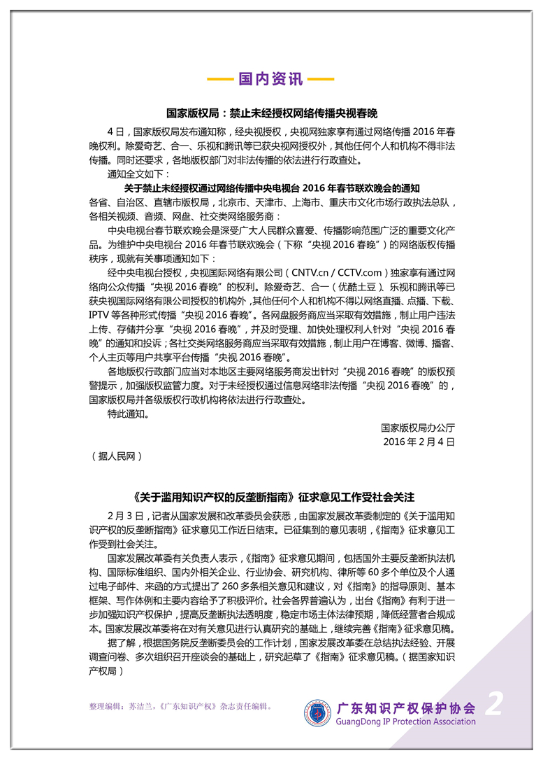 广东知识产权保护协会第4期:知识产权·每周资讯