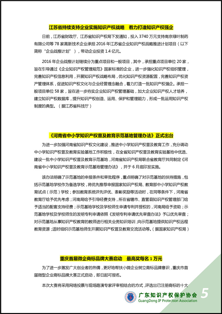 广东知识产权保护协会第25期:知识产权·每周资讯