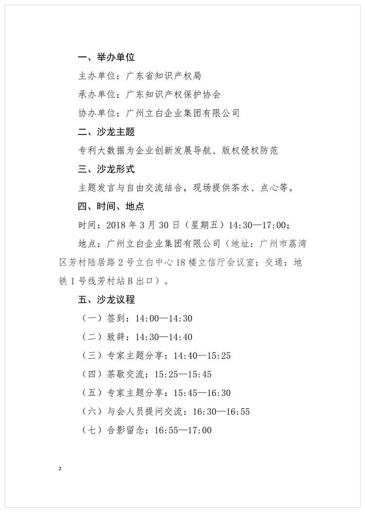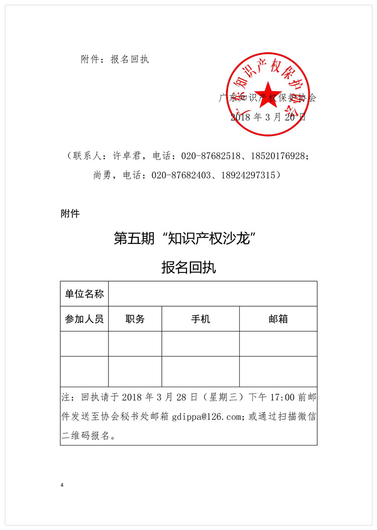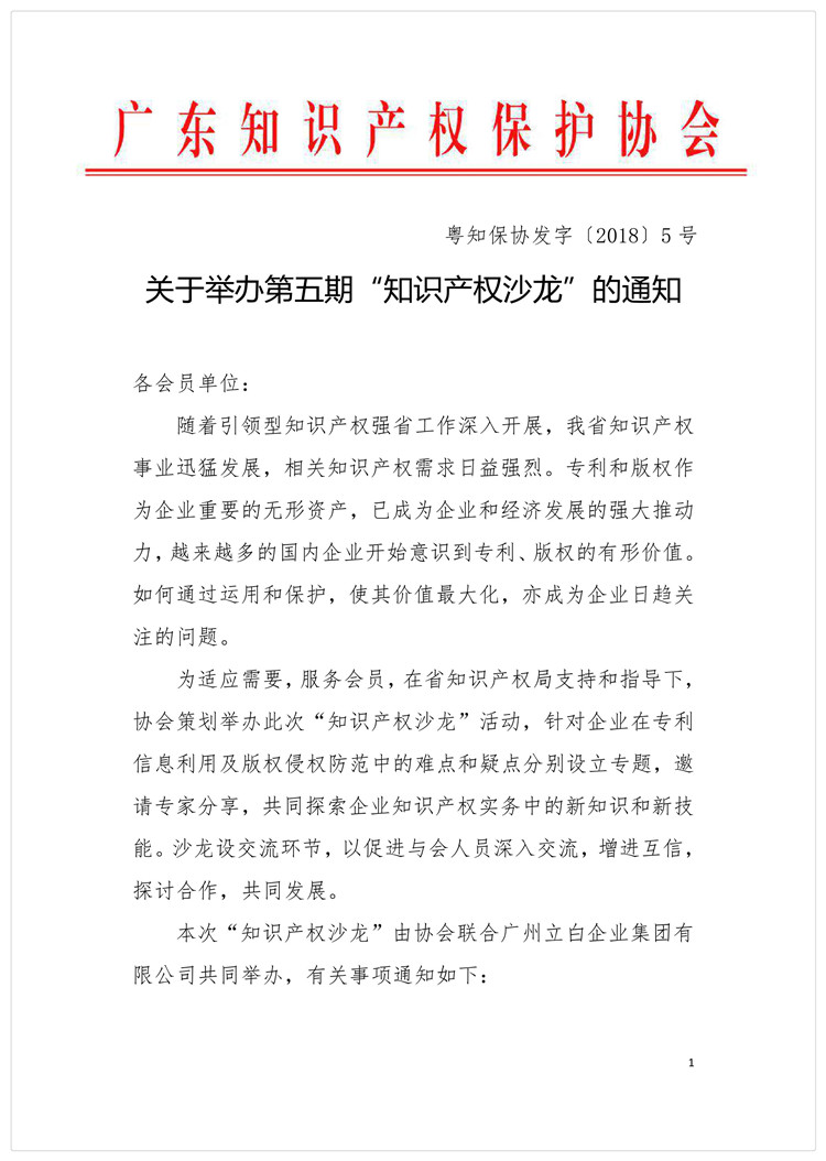 粤知保协发字〔2018〕5号-关于举办第五期“知识产权沙龙”的通知