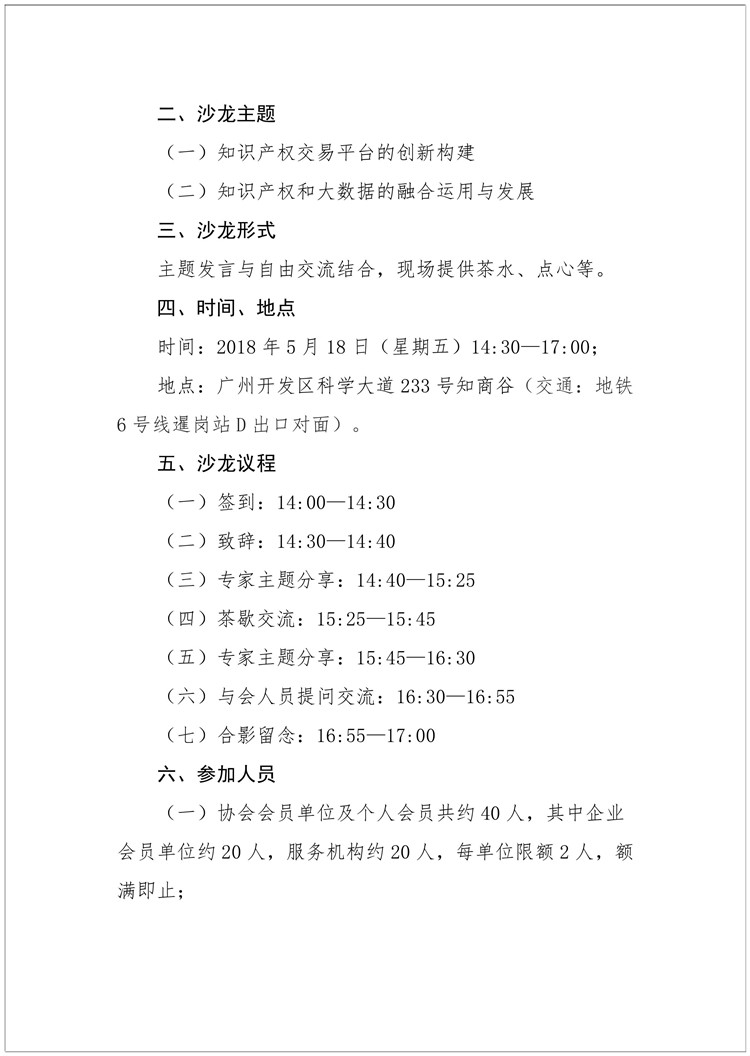 粤知保协发字〔2018〕13号-关于举办第六期“知识产权沙龙”的通知