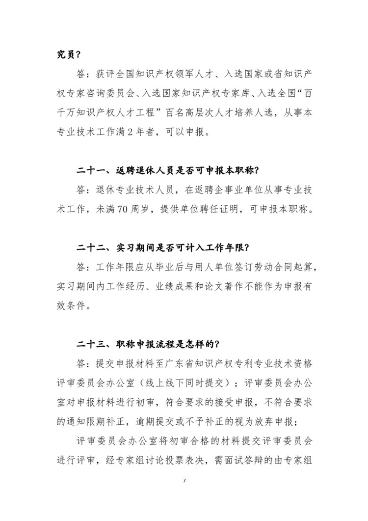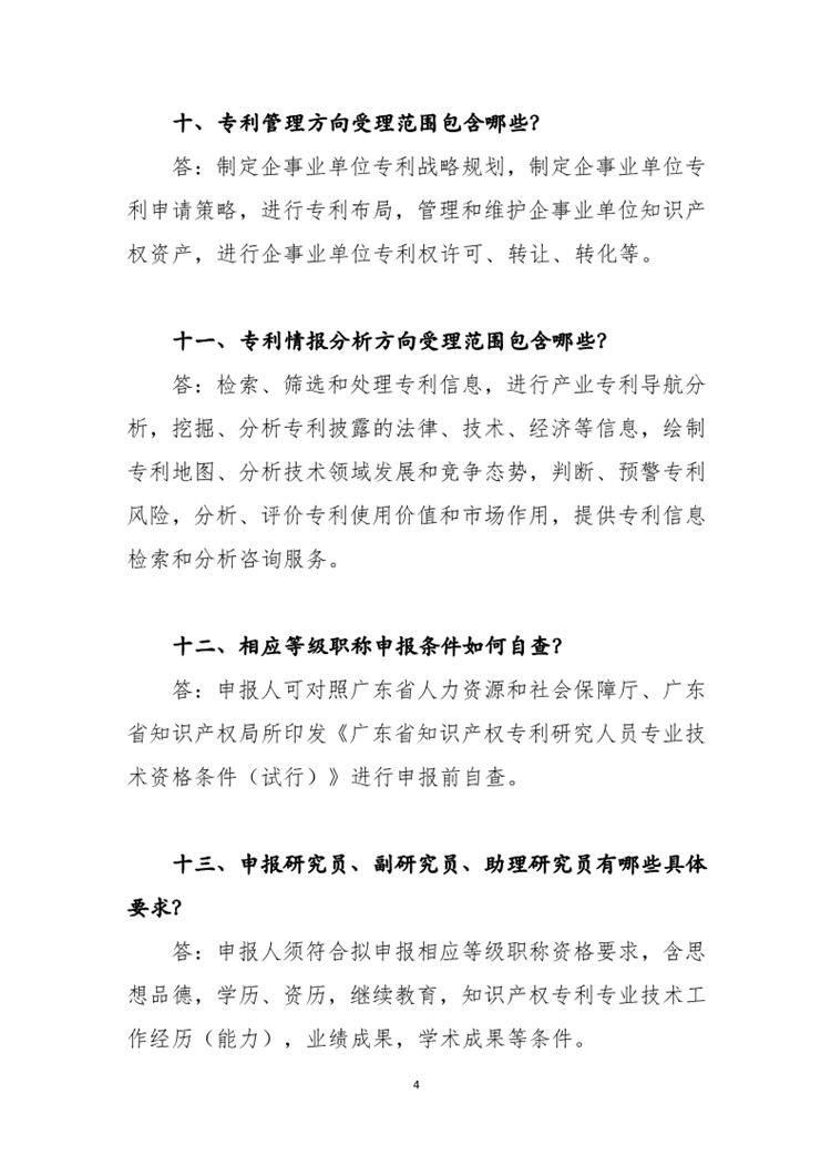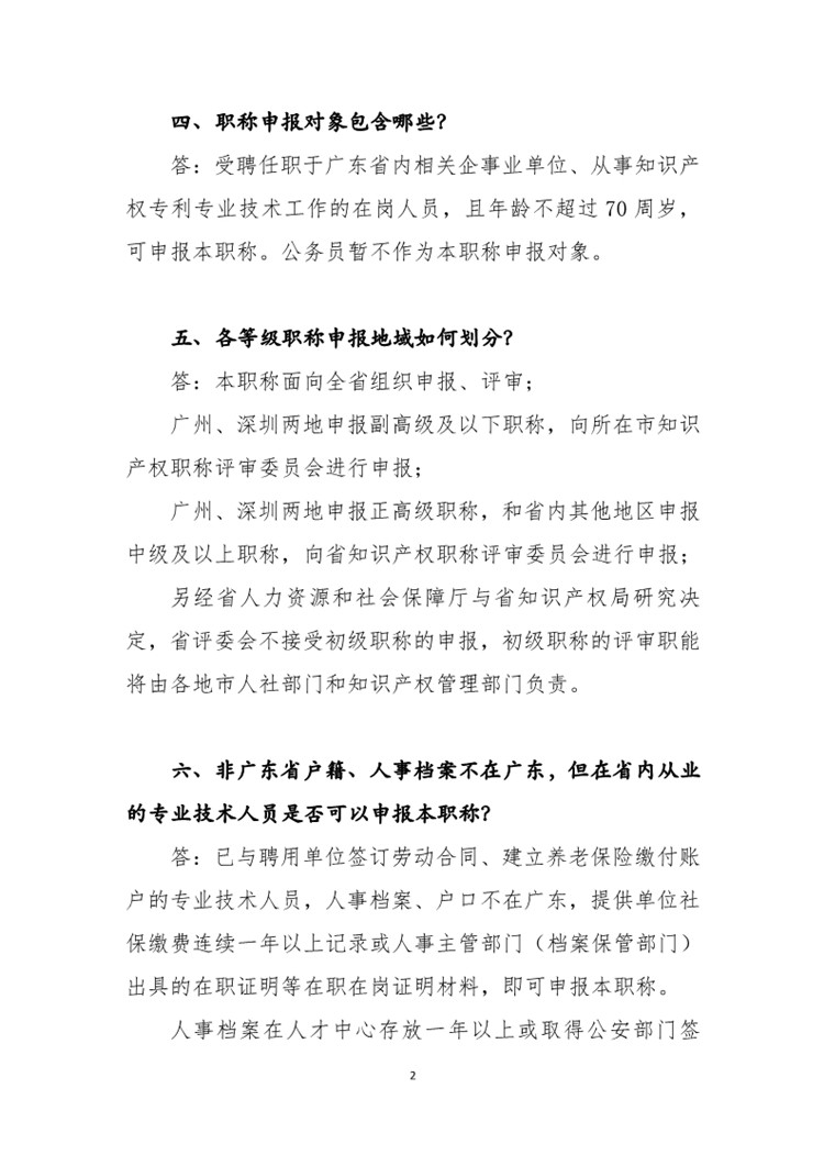广东省知识产权专利专业技术资格申报相关问答汇编
