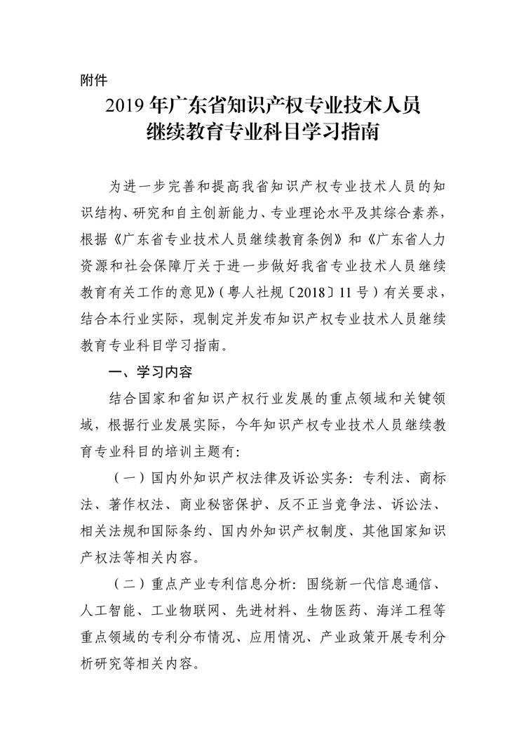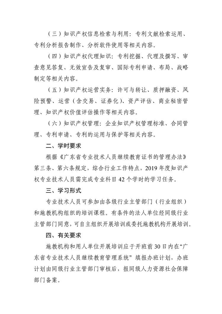 粤知保协发字〔2019〕15号-关于发布2019年广东省知识产权专业技术人员继续教育专业科目学习指南的通知