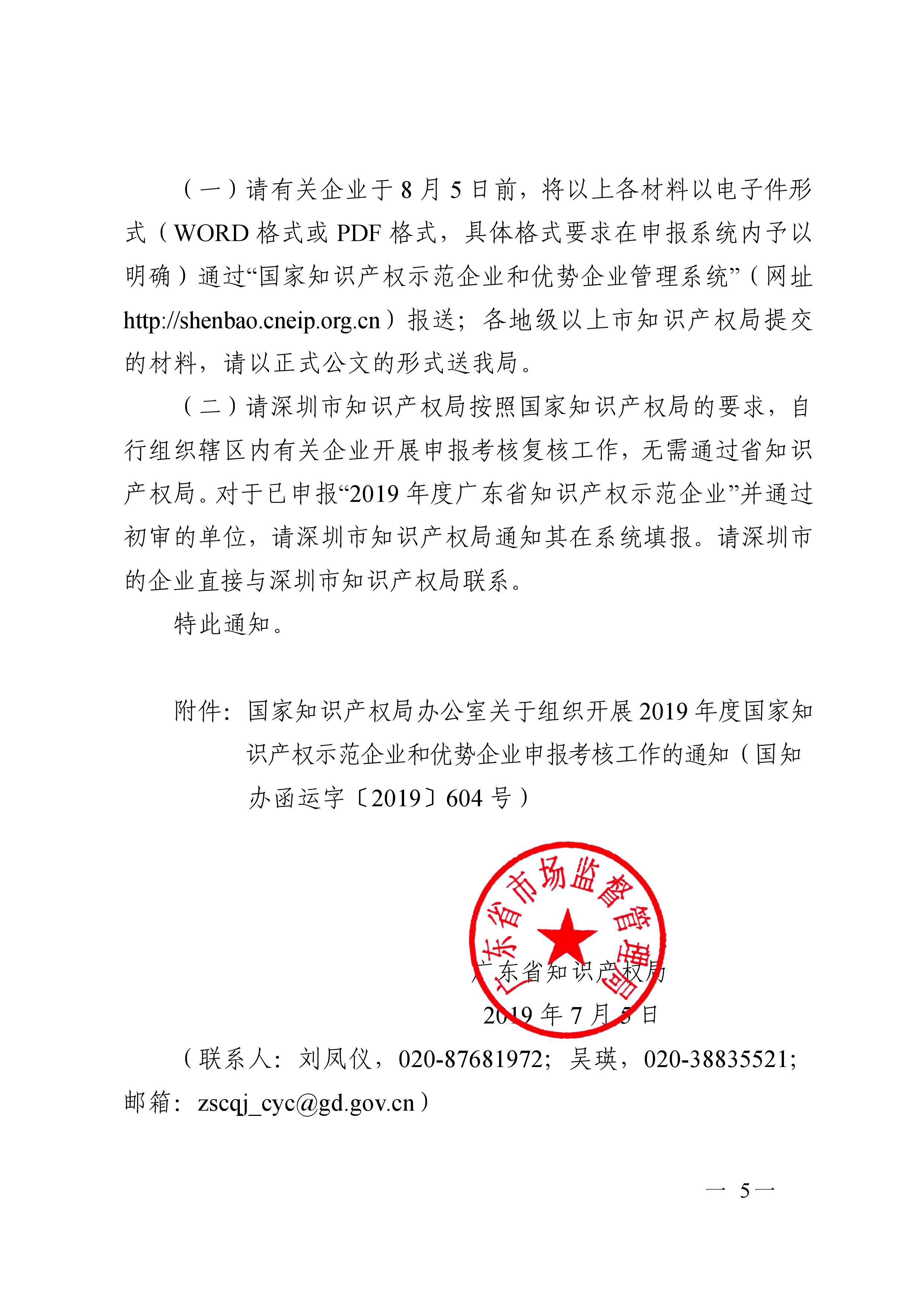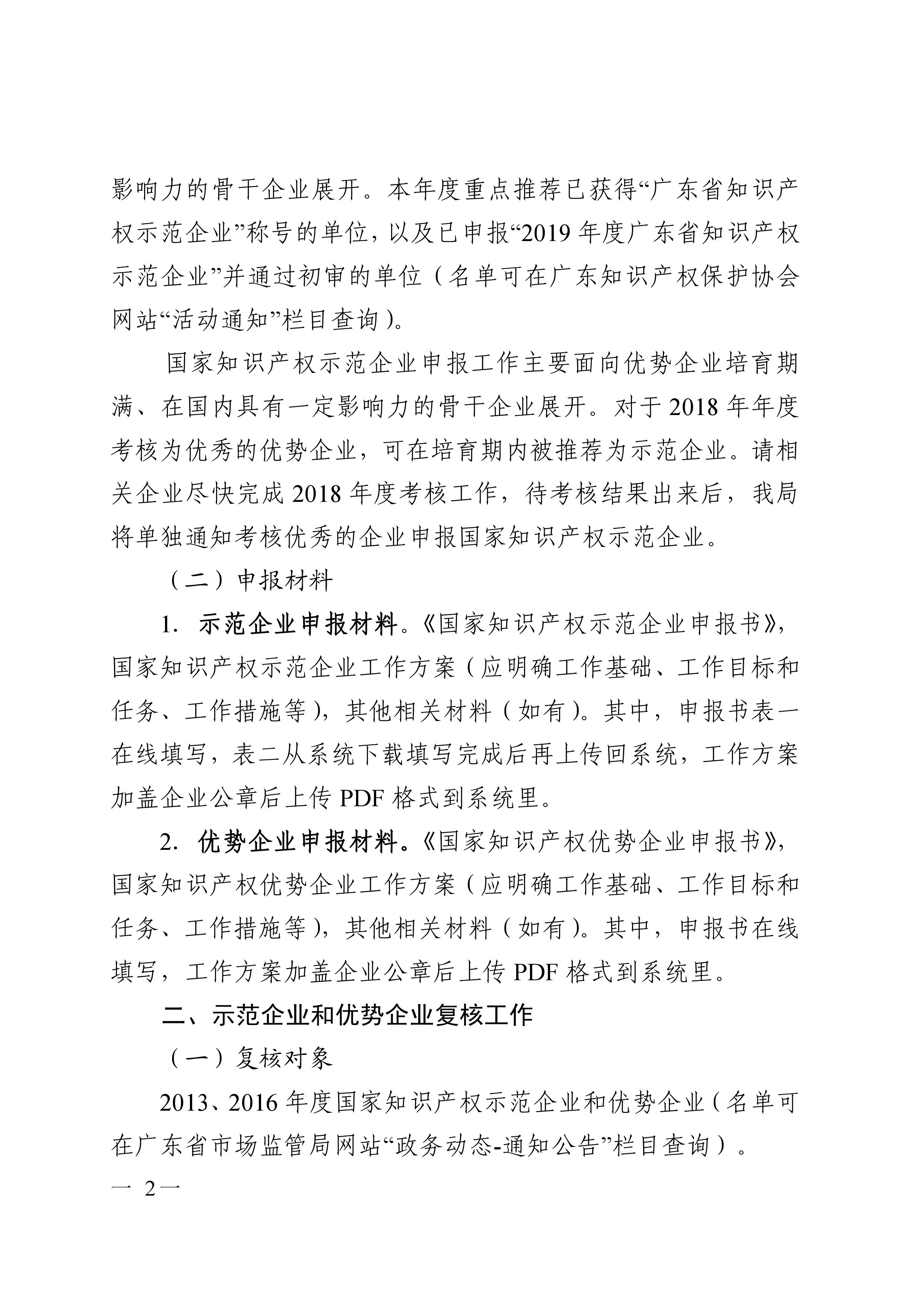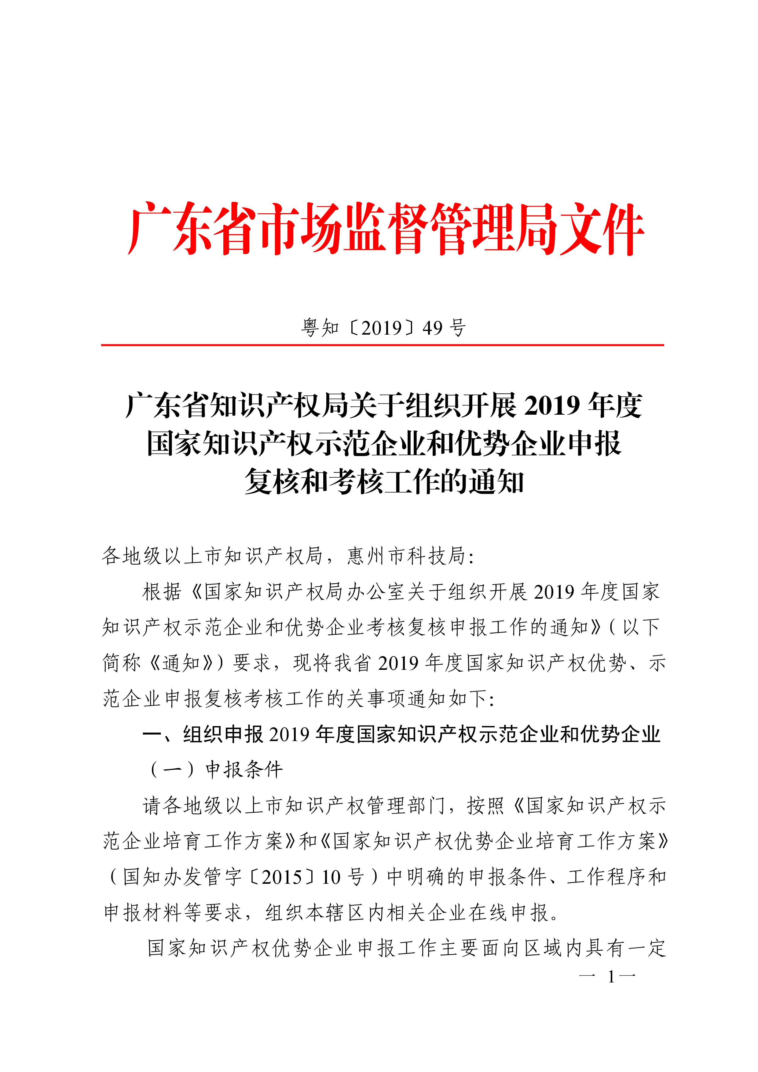 【转发】广东省知识产权局关于组织开展2019年度国家知识产权示范企业和优势企业申报复核和考核工作的通知