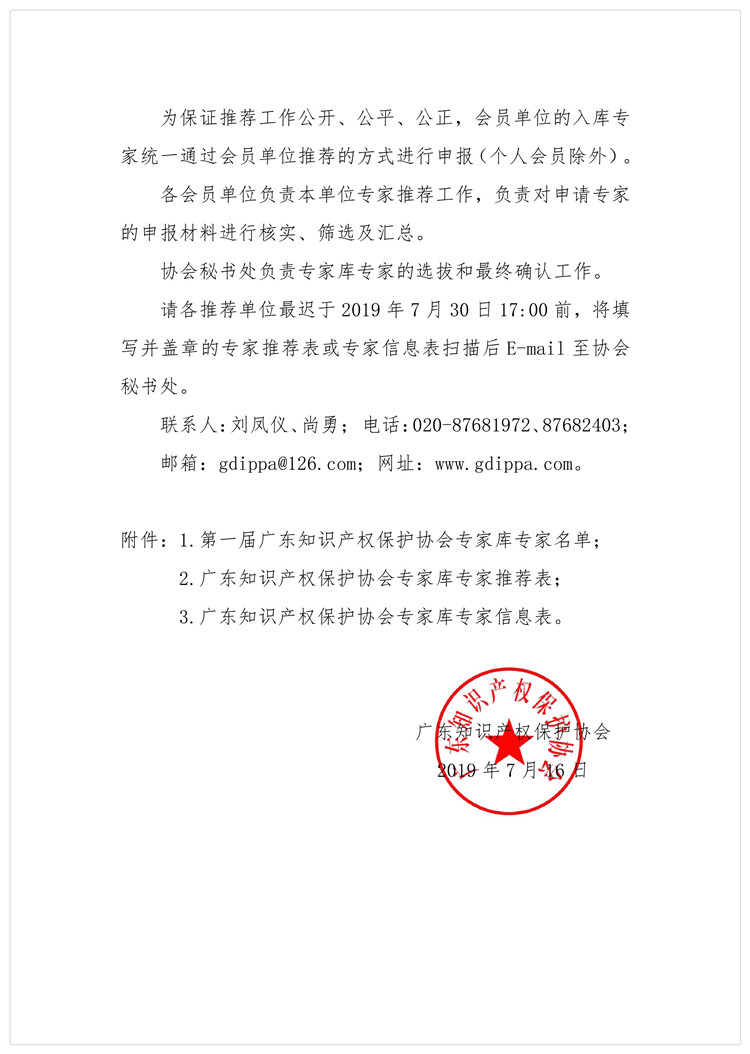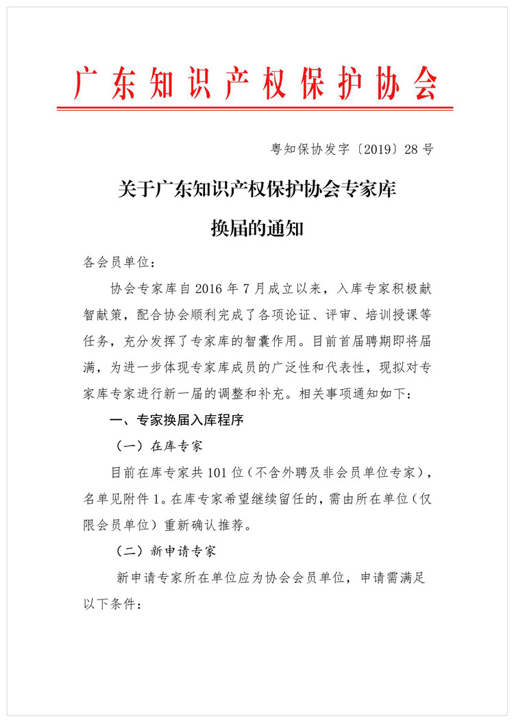 粤知保协发字〔2019〕28号-关于广东知识产权保护协会专家库换届的通知