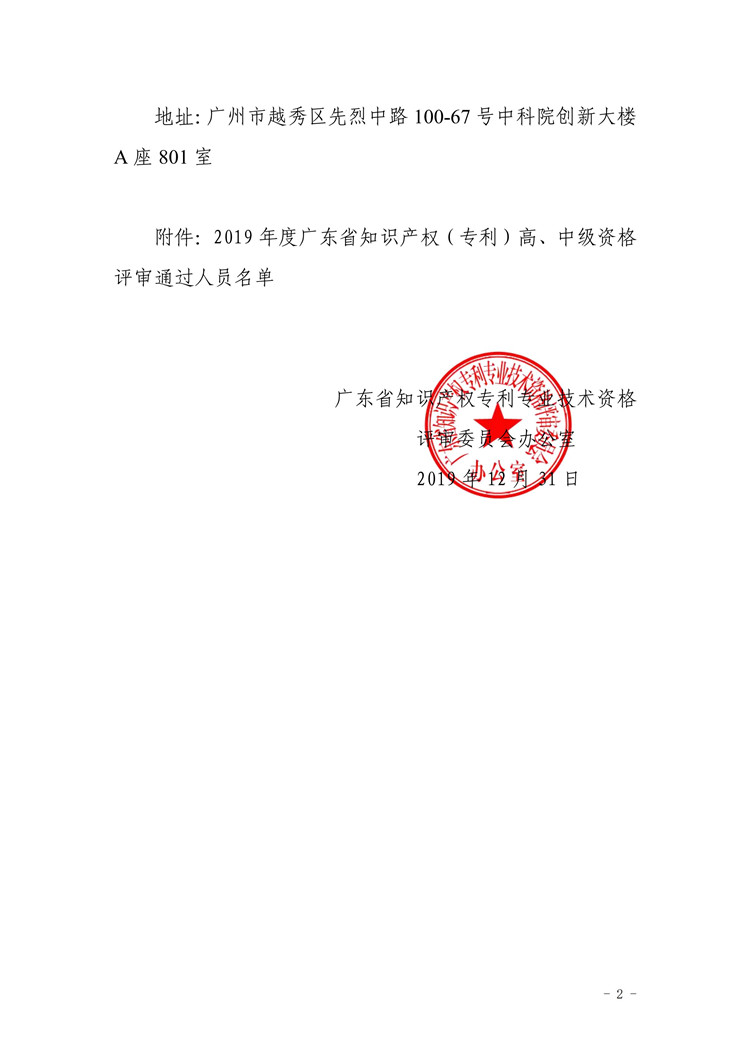 关于2019年度广东省知识产权(专利)高、中级资格评审通过人员名单的公示