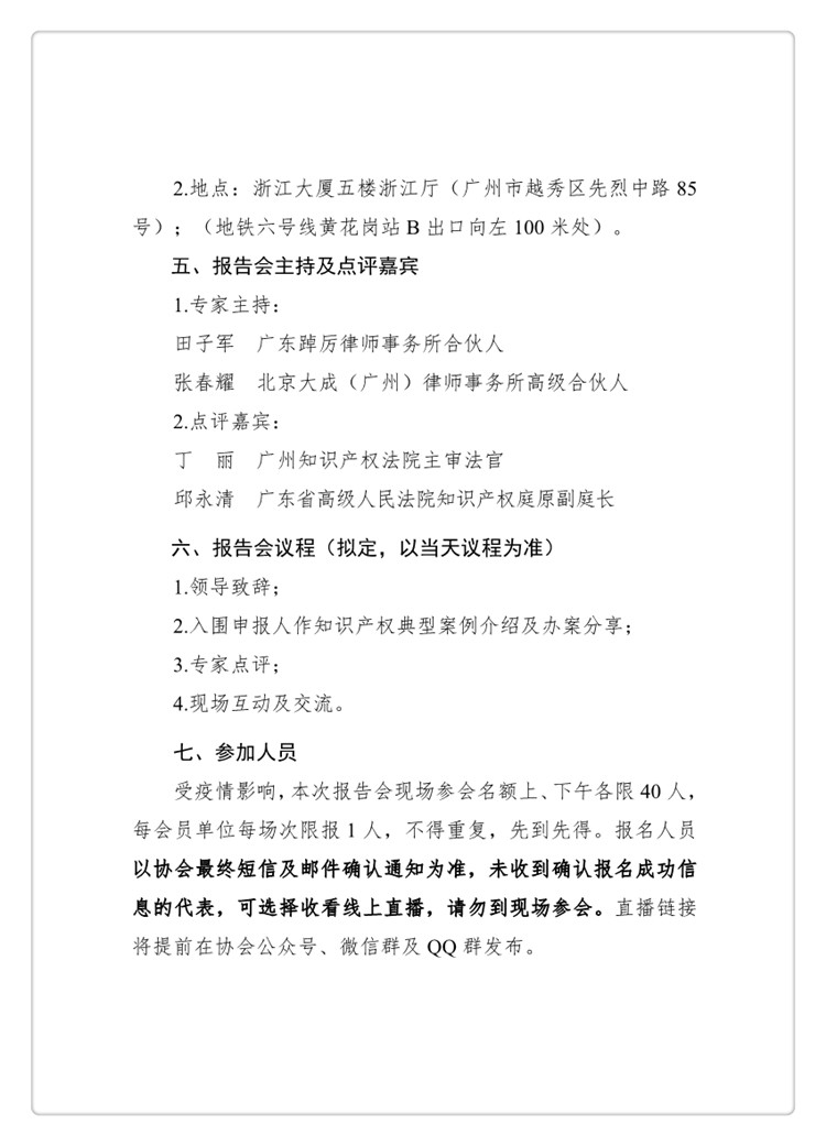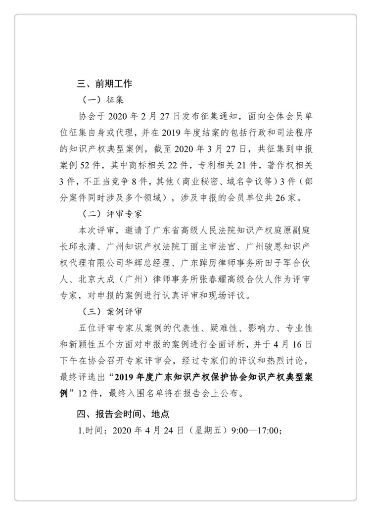 粤知保协发字〔2020〕18号-关于举办“2019年度知识产权典型案例报告会”的通知