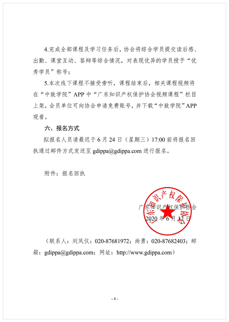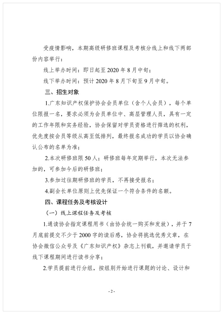 粤知保协发字〔2020〕25号-关于举办“第五期知识产权高级管理人员(总裁、总监)研修班”的通知