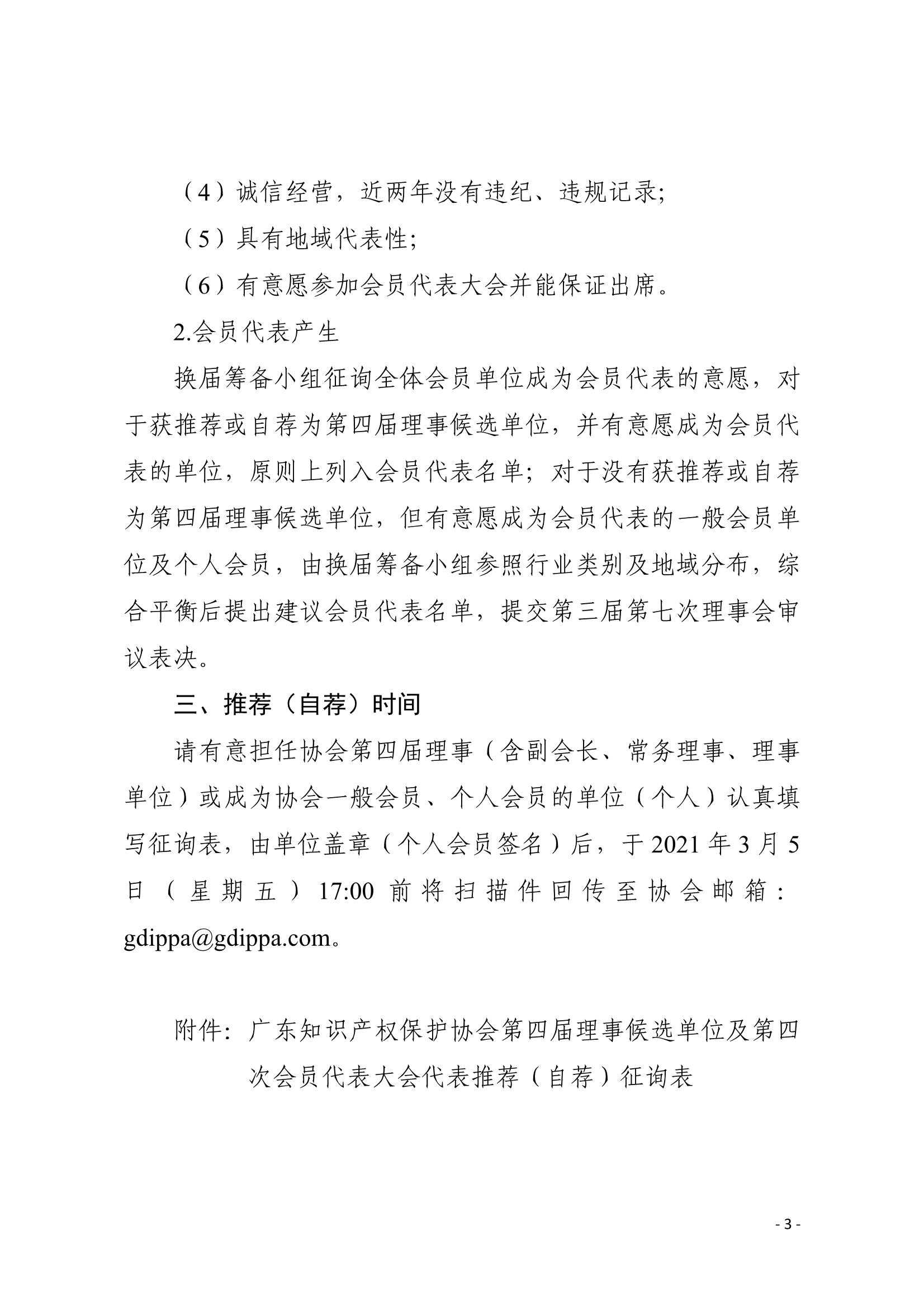 附件:广东知识产权保护协会第四届理事候选单位及第四次会员代表大会代表推荐(自荐)征询表