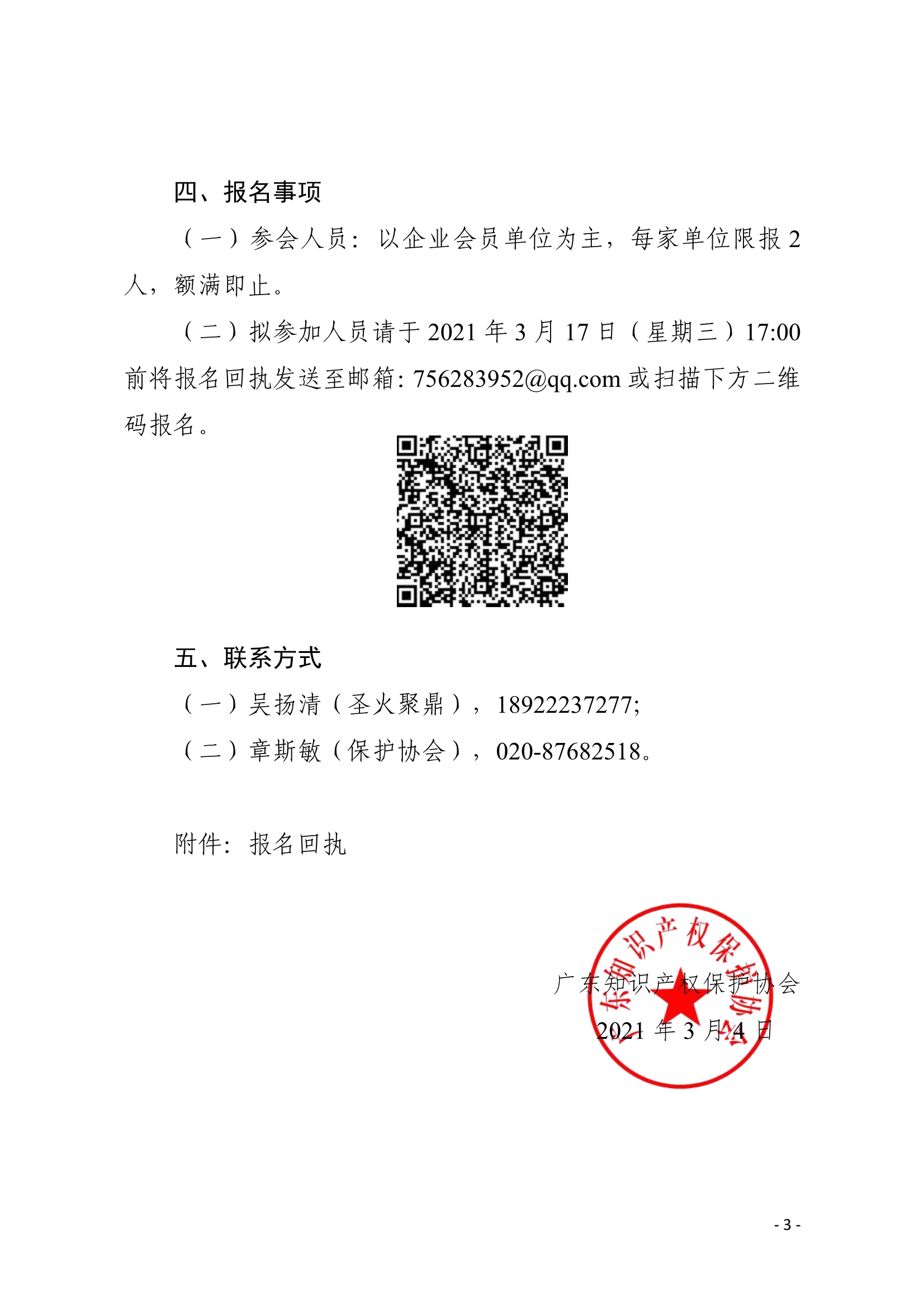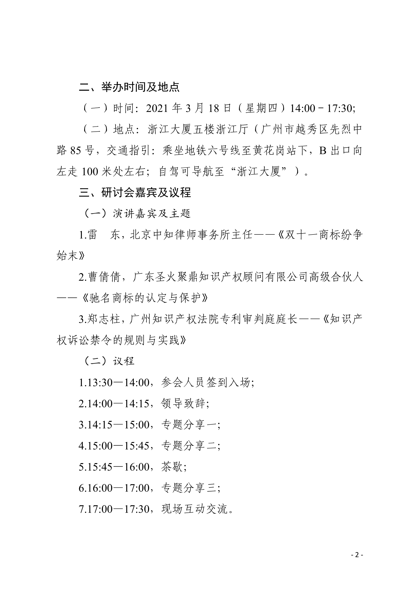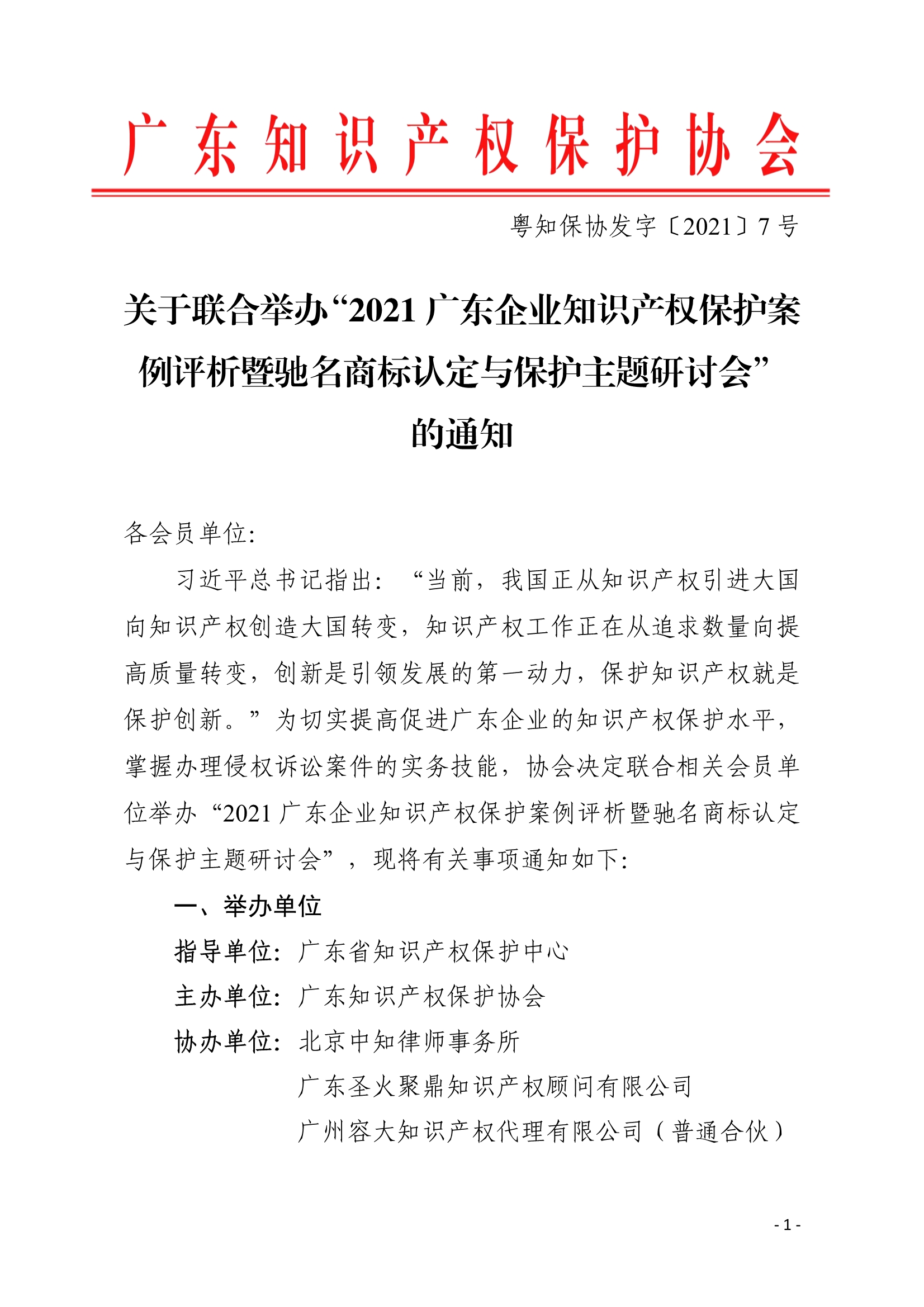粤知保协发字〔2021〕7号-关于联合举办“2021广东企业知识产权保护案例评析暨驰名商标认定与保护主题研讨会”的通知