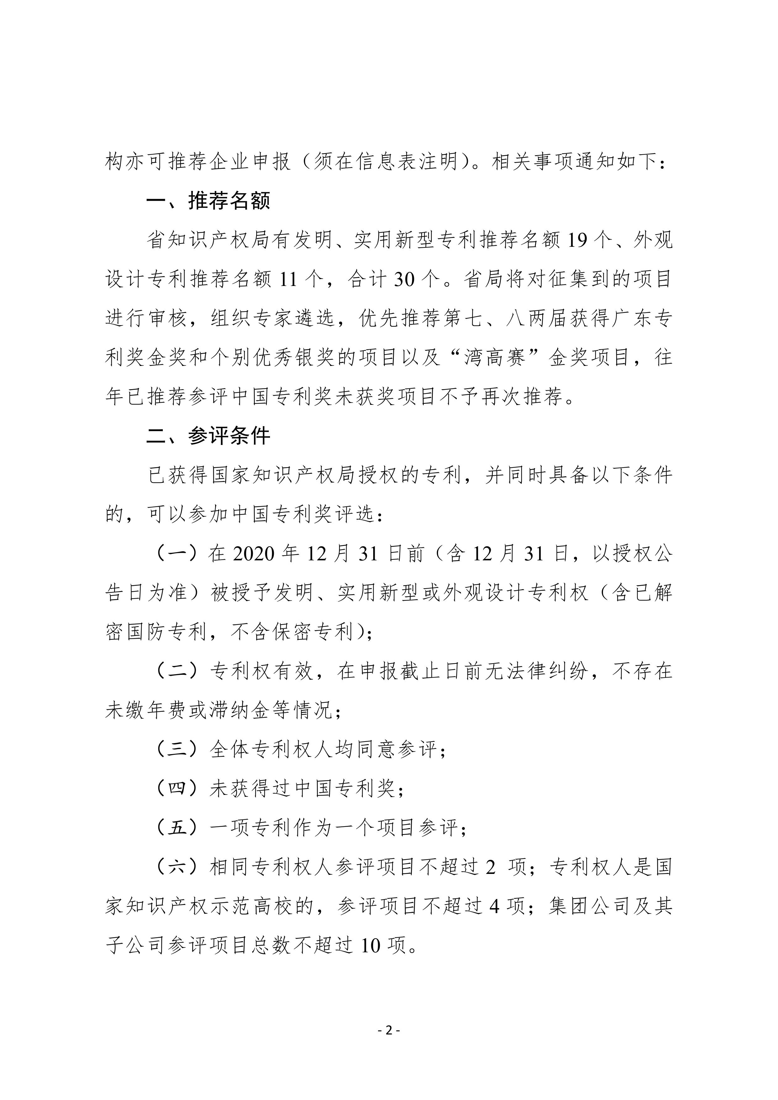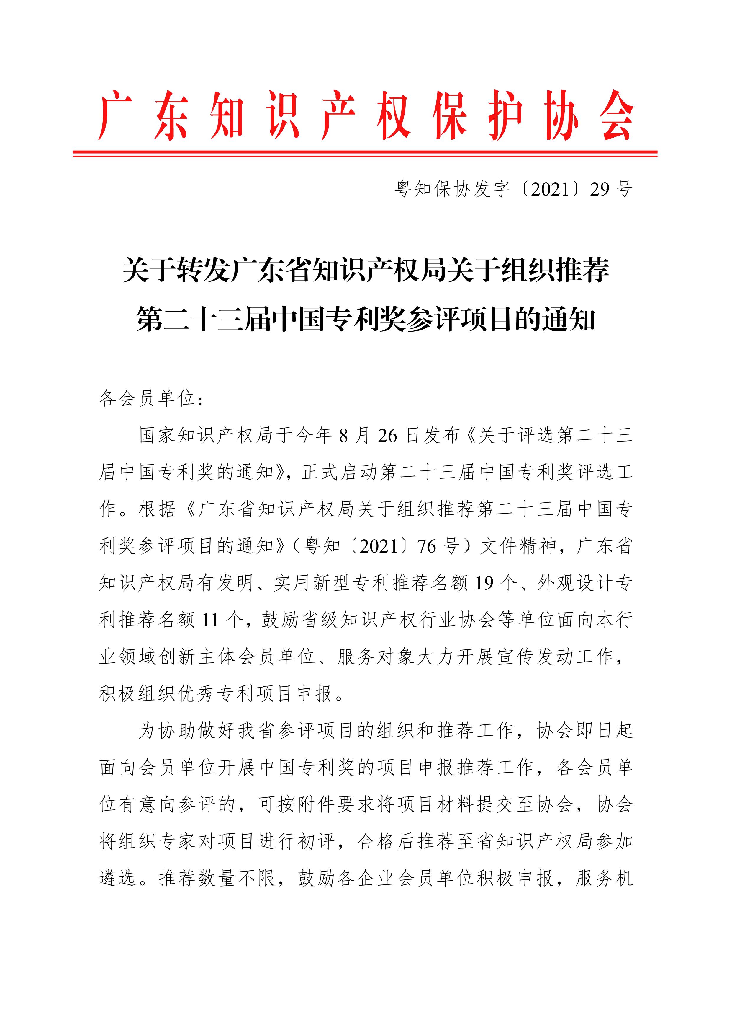 4.广东省知识产权局关于组织推荐第二十三届中国专利奖参评项目的通知(附国家知识产权局通知)