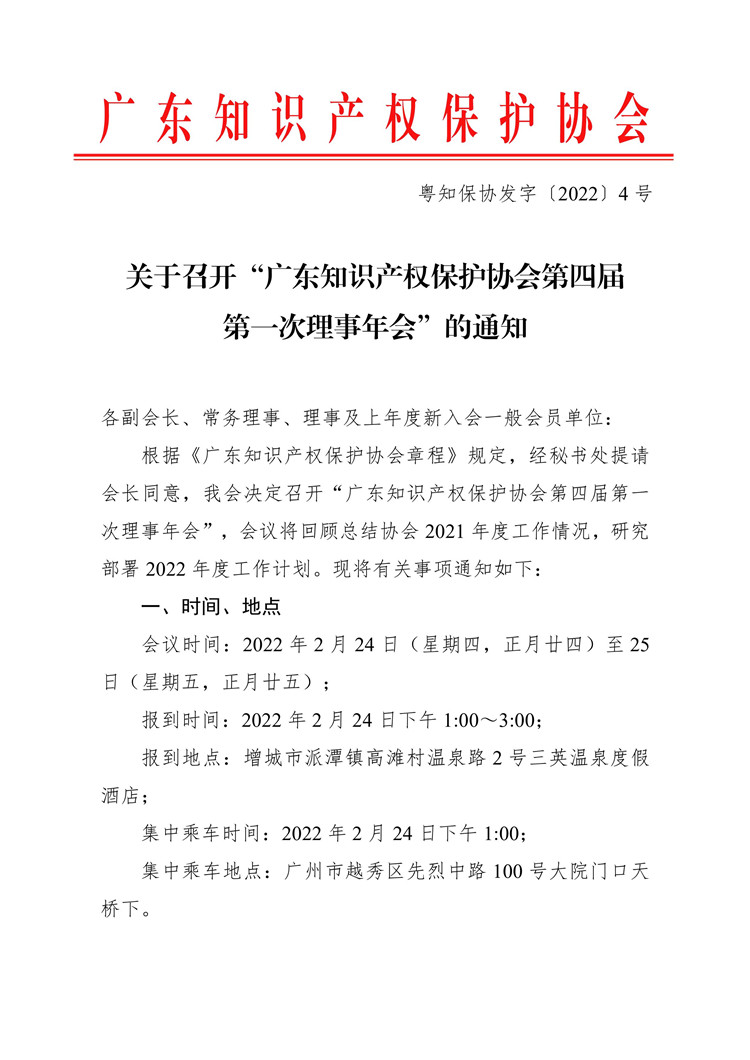 粤知保协发字〔2022〕4号-关于召开“广东知识产权保护协会第四届第一次理事年会”的通知