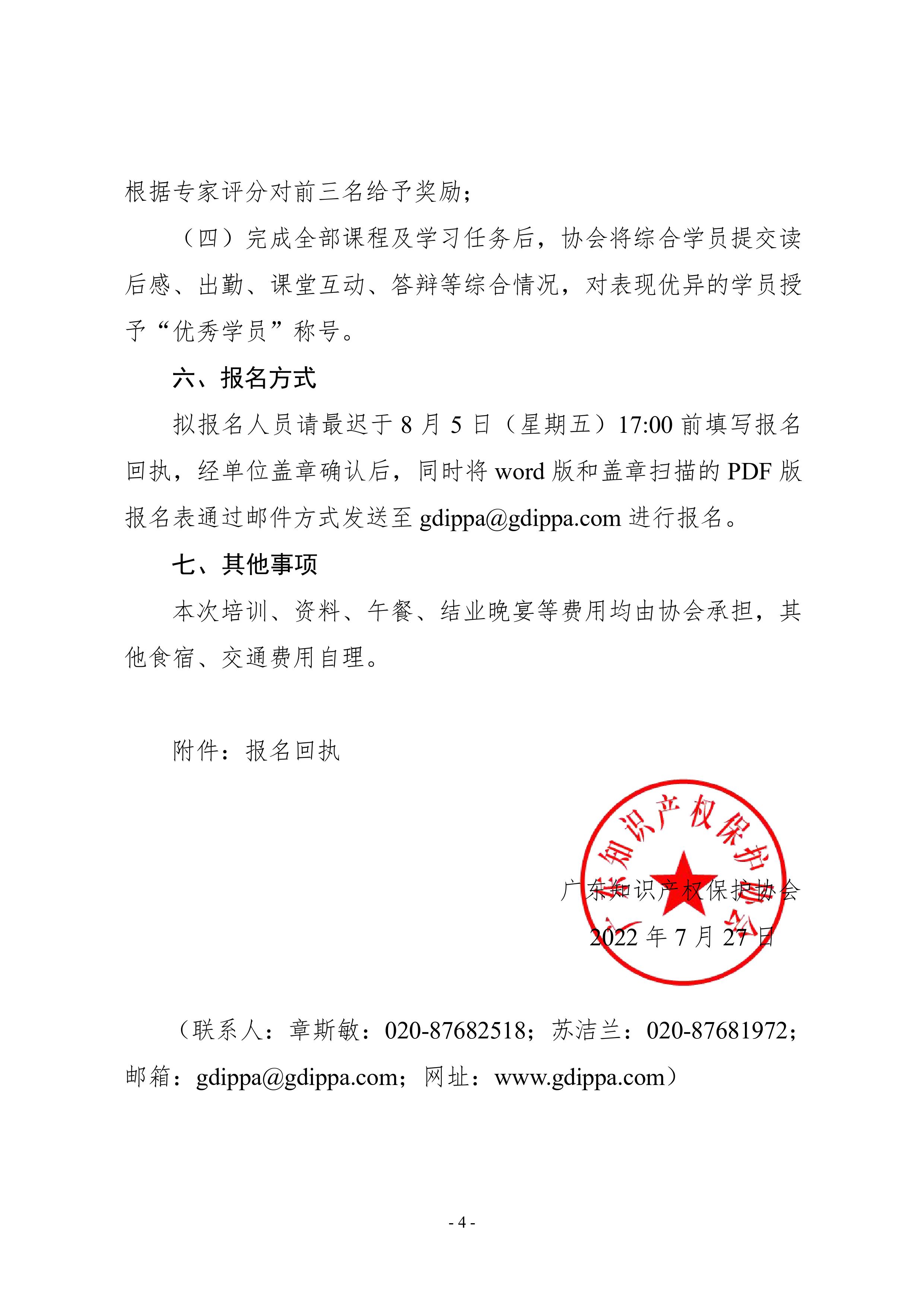 粤知保协发字〔2022〕28号-关于举办“第七期知识产权高级管理人员(总裁、总监)研修班”的通知