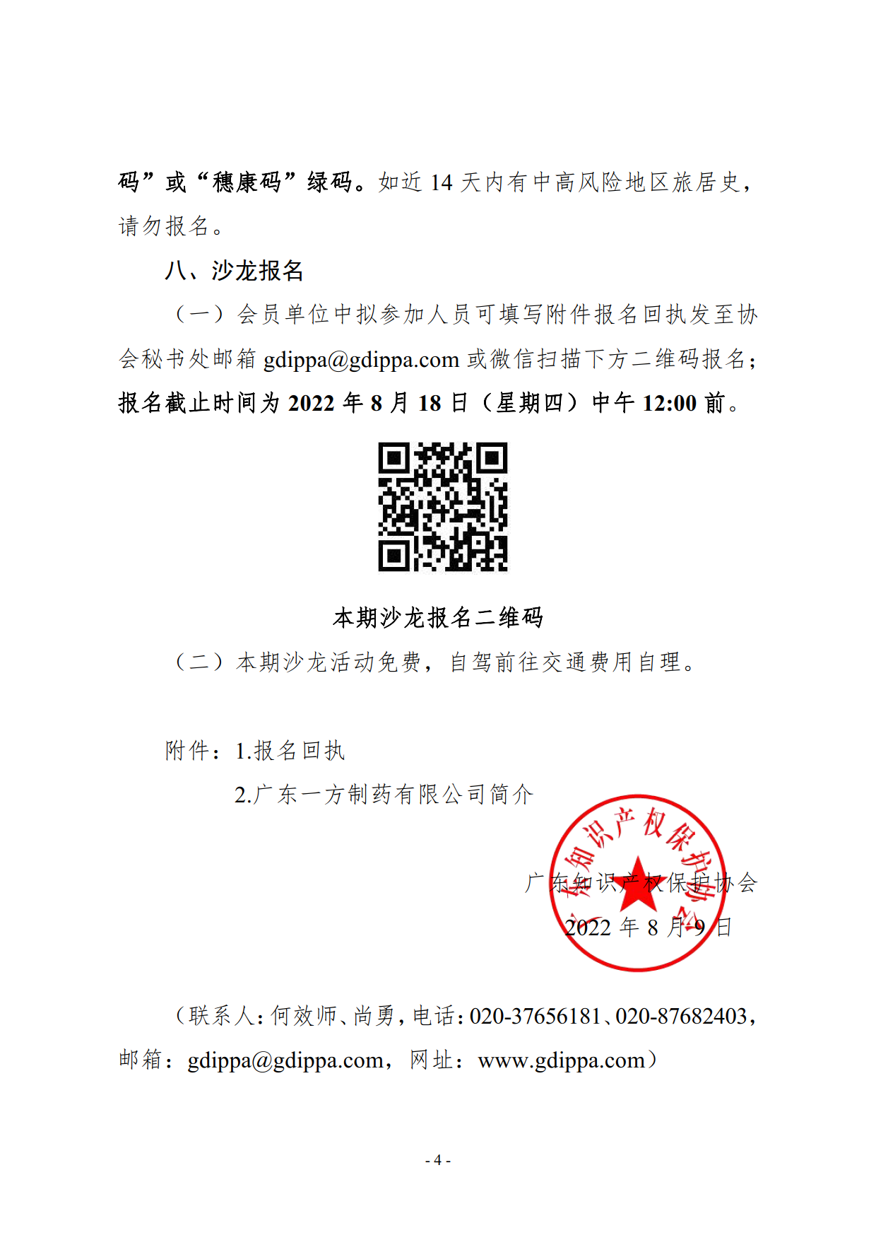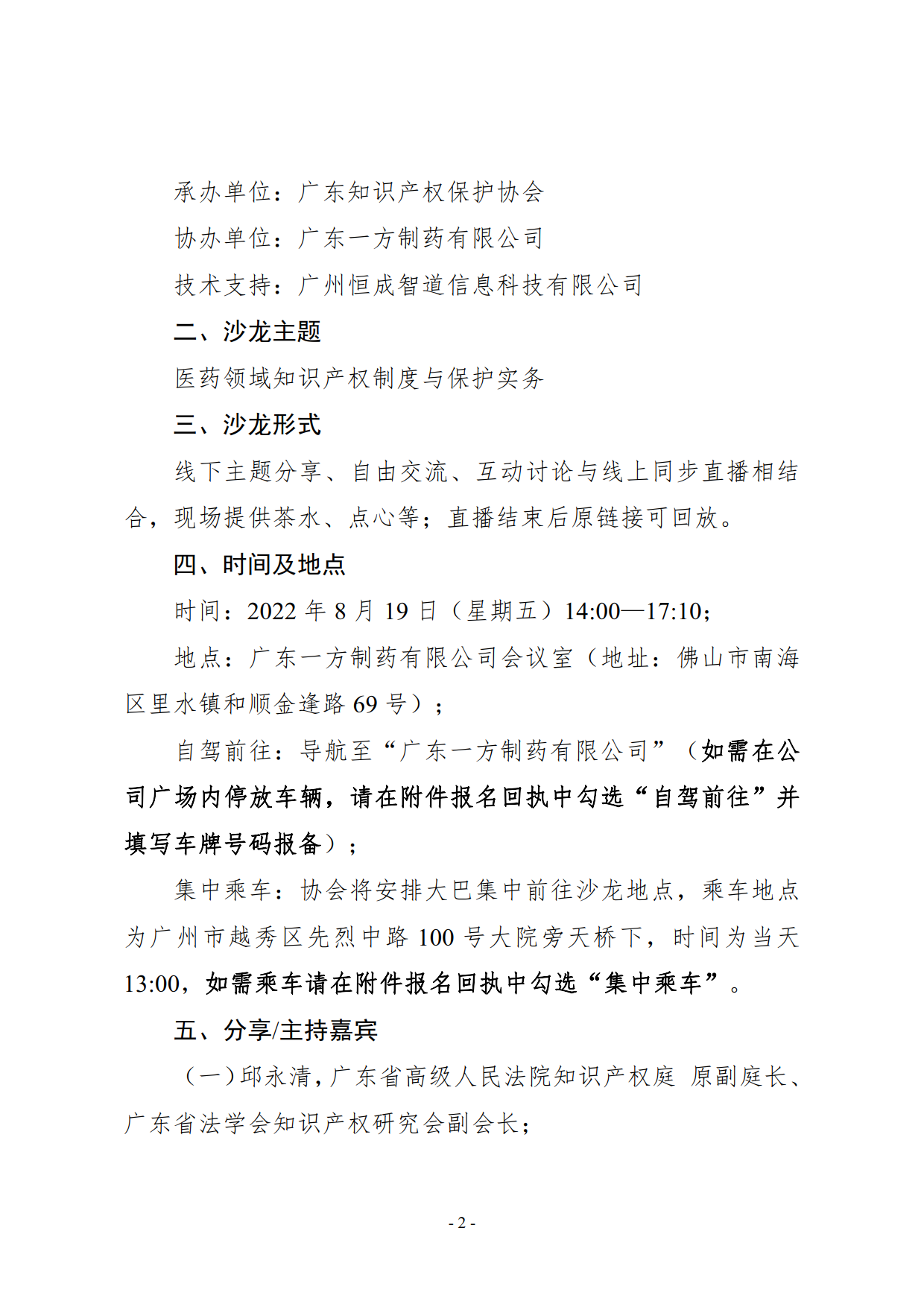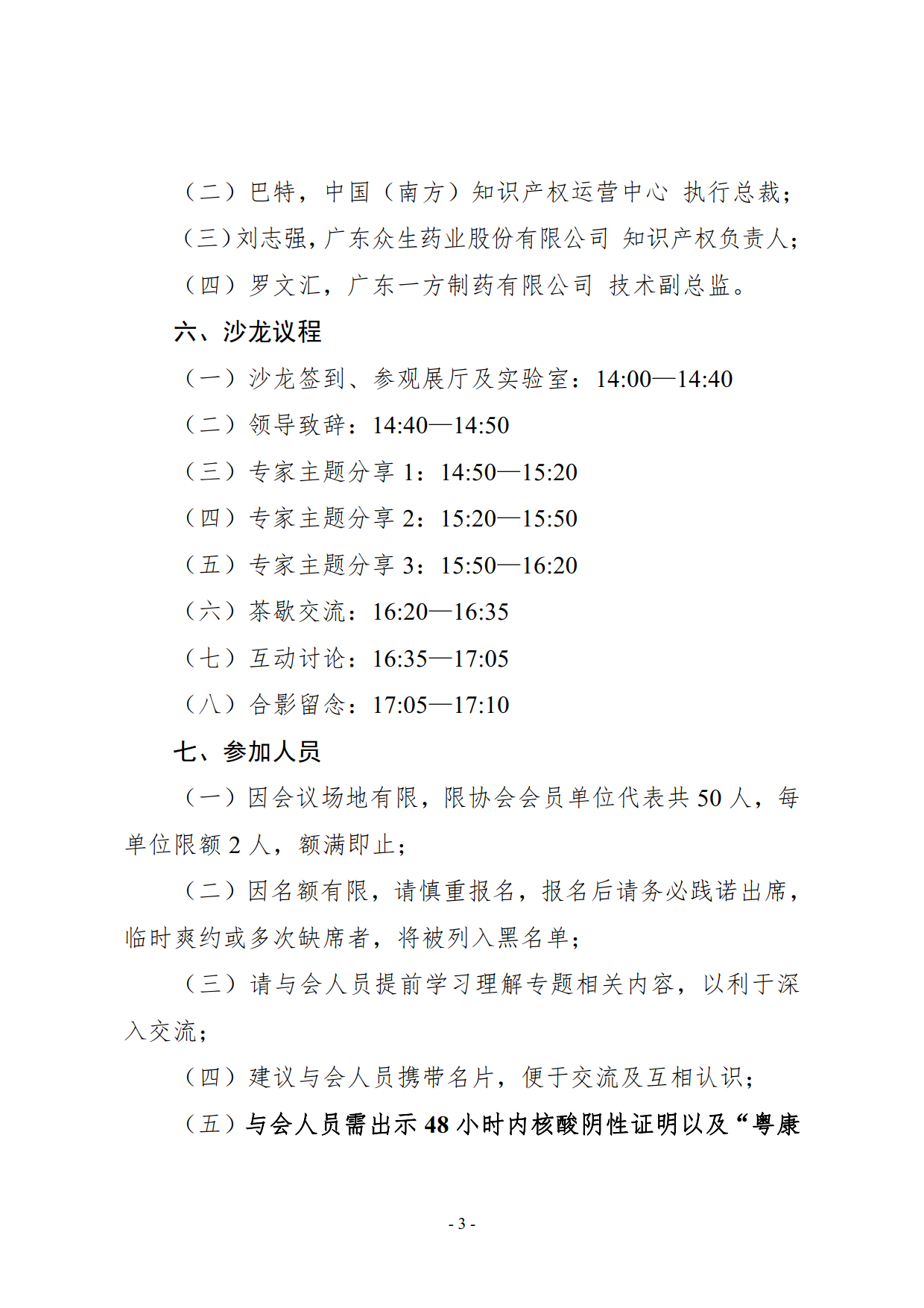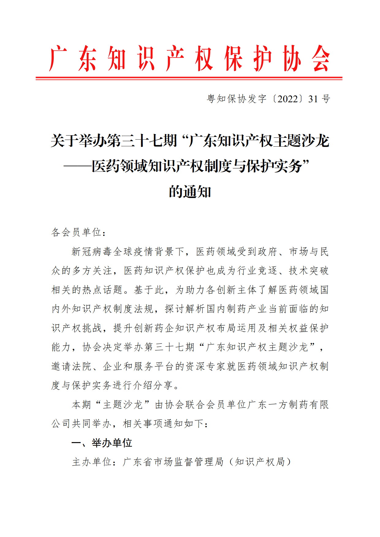 粤知保协发字〔2022〕31号-关于举办第三十七期“广东知识产权主题沙龙——医药领域知识产权制度与保护实务”的通知