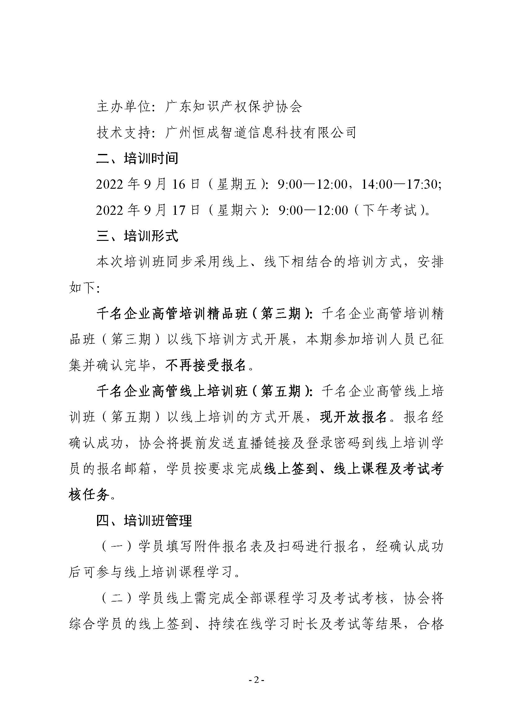 粤知保协发字〔2022〕37号-关于举办“千名企业高管培训精品班(第三期)暨千名企业高管线上培训班(第五期)”的通知