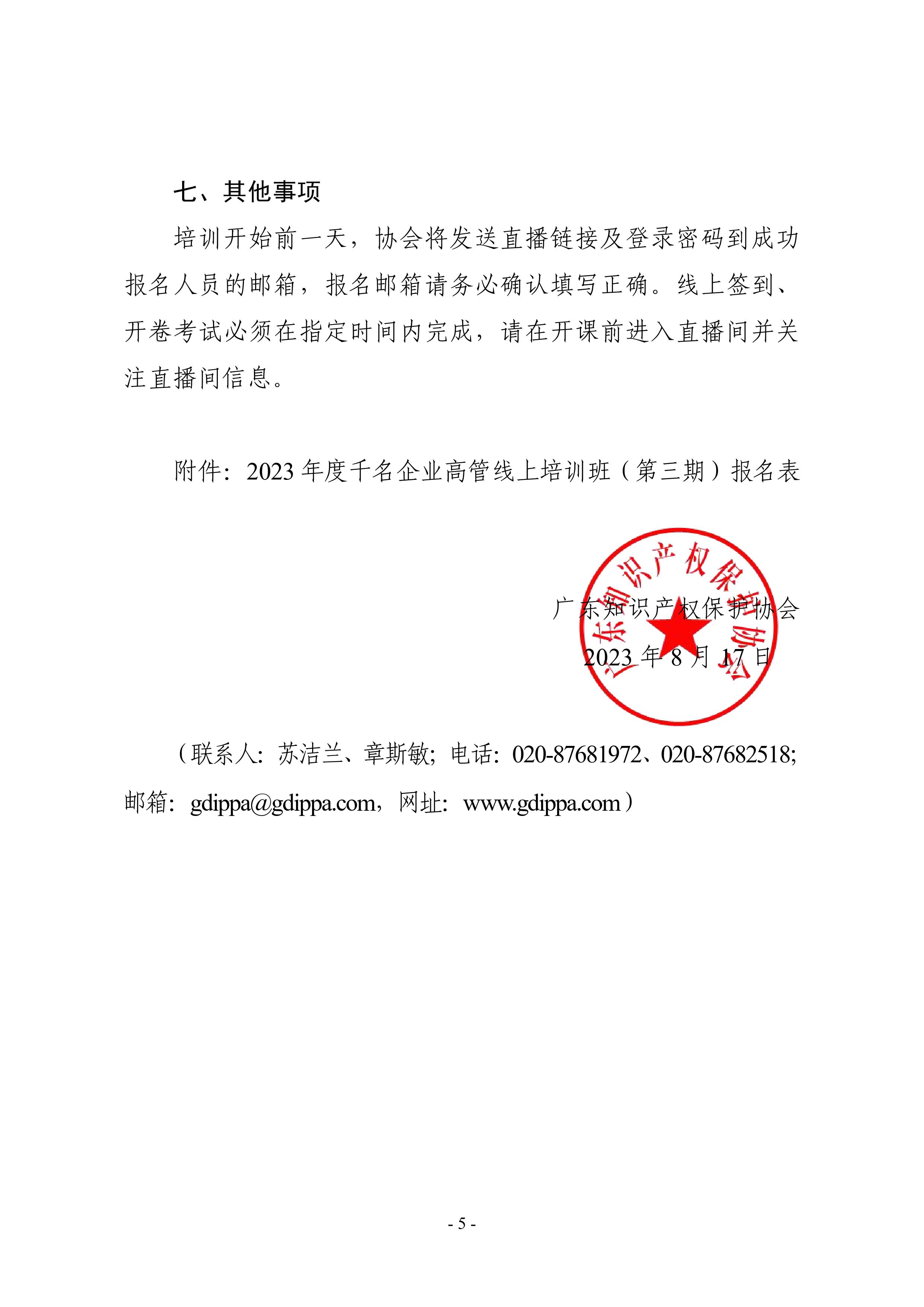 粤知保协发字〔2023〕25号-关于举办“2023年度千名企业高管精品班(第一期)暨千名企业高管线上培训班(第三期)”的通知