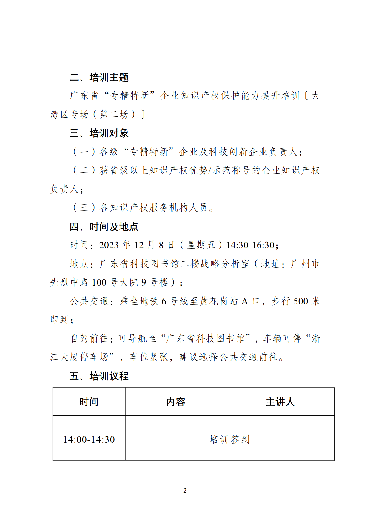 粤知保协发字〔2023〕38号-关于举办广东省“专精特新”企业知识产权保护能力提升培训〔大湾区专场(第二场)〕的通知