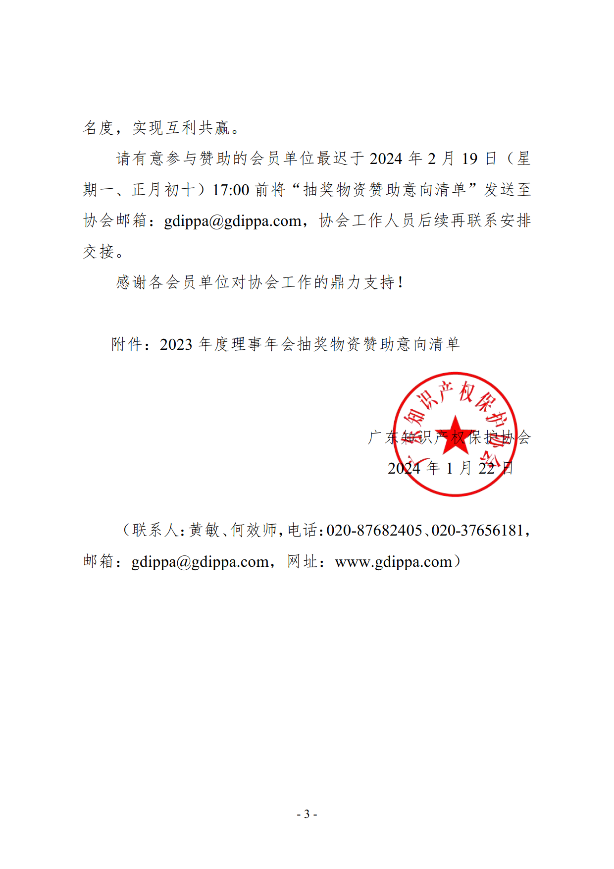 粤知保协发字〔2024〕2号-关于邀请赞助2023年度理事年会抽奖物资的通知