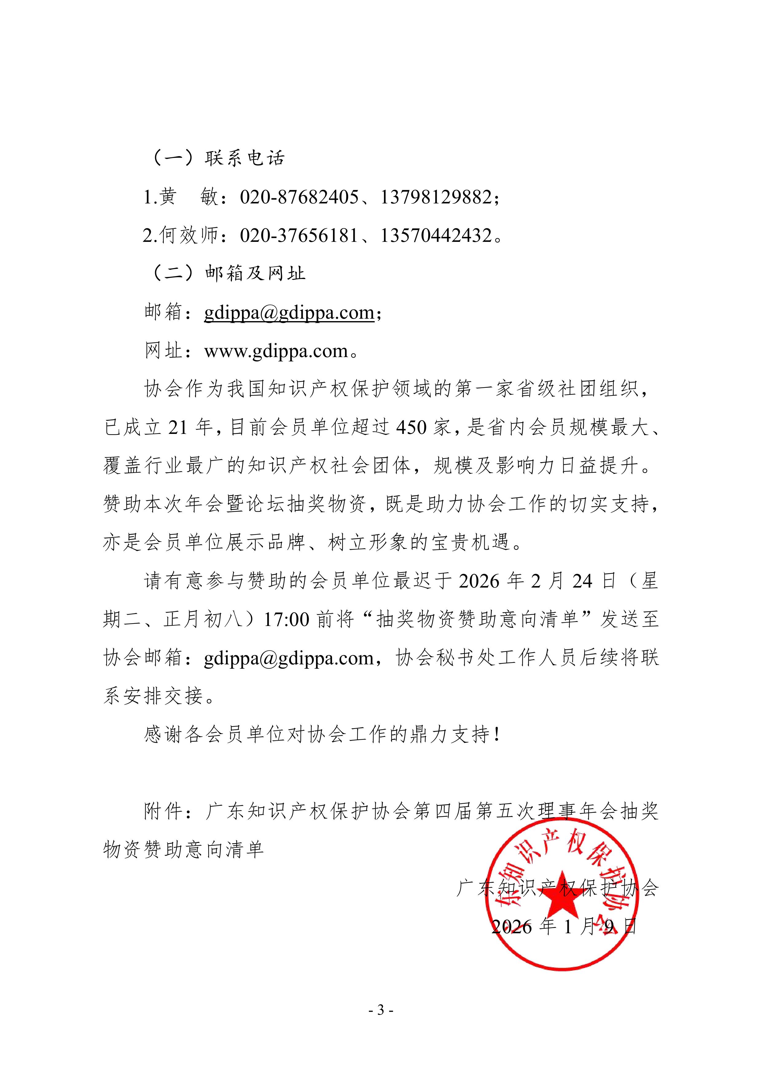 附件:广东知识产权保护协会第四届第五次理事年会抽奖物资赞助意向清单