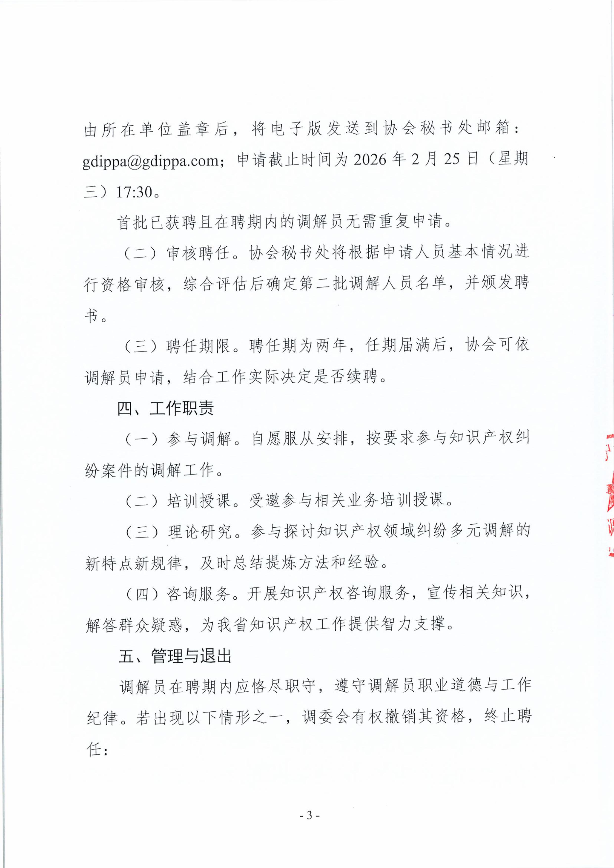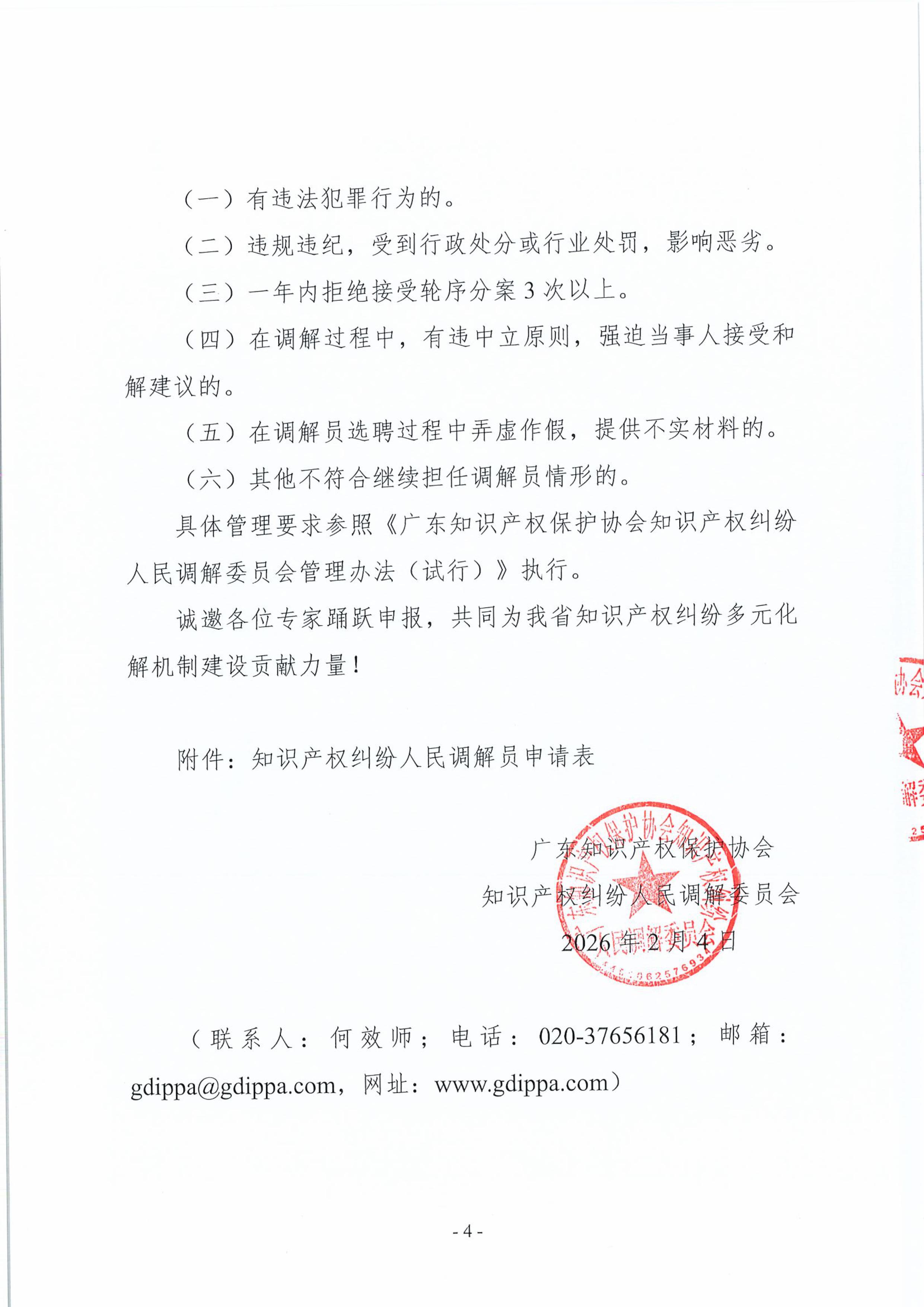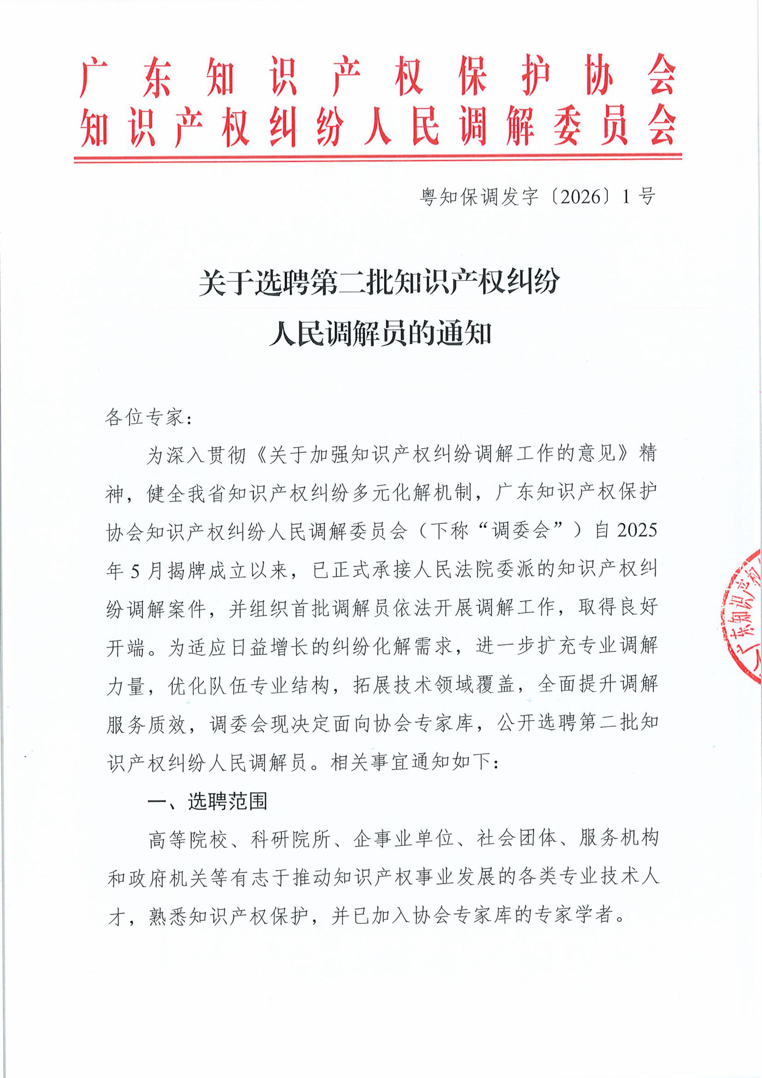 粤知保调发字〔2026〕1号-关于选聘第二批知识产权纠纷人民调解员的通知