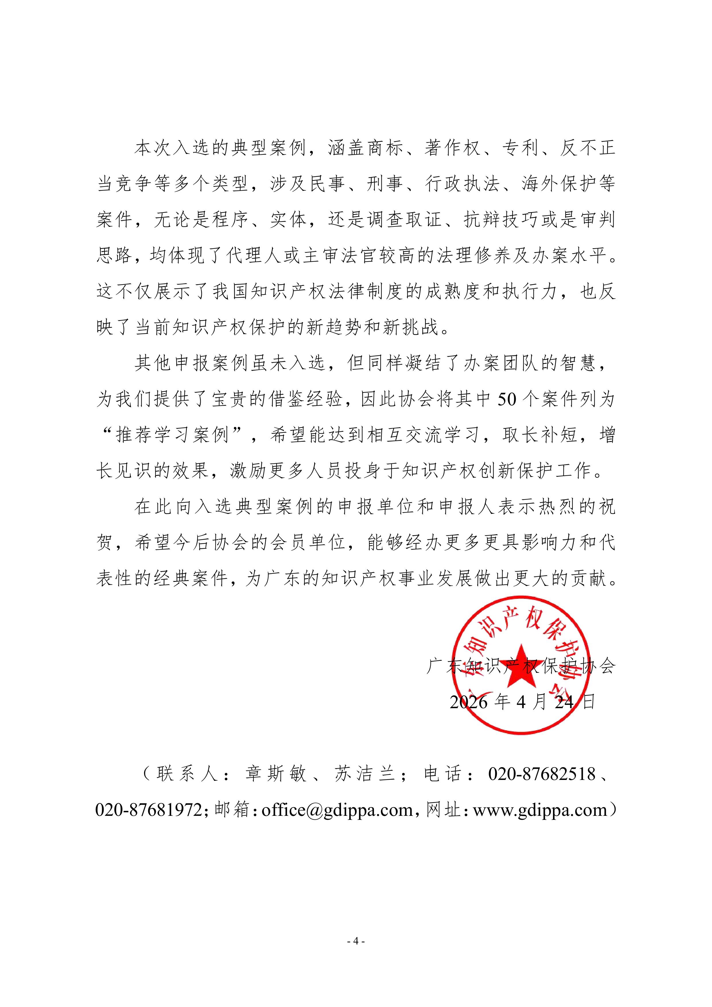 粤知保协发字〔2026〕14号-关于公布“2025年度知识产权典型案例”的通知