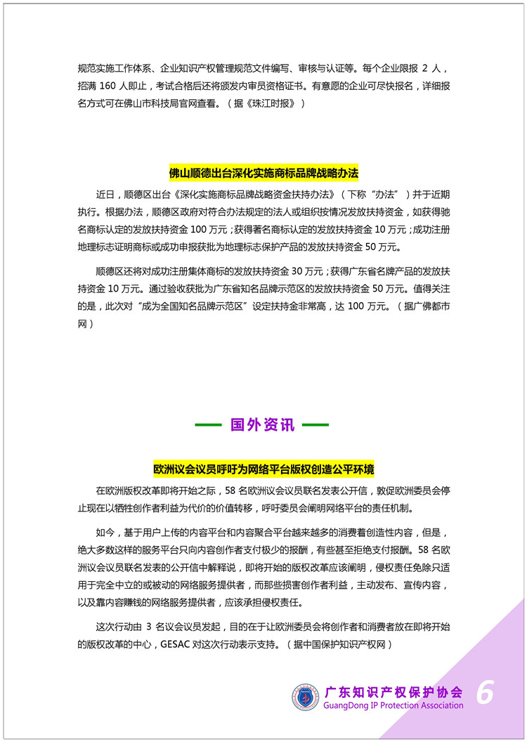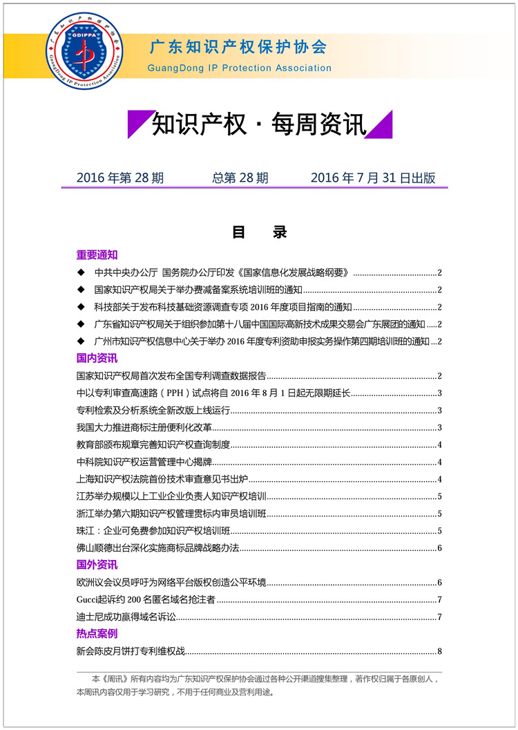 广东知识产权保护协会第28期:知识产权·每周资讯