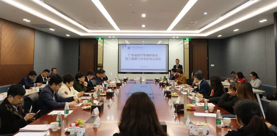 回顾2018年,广东知识产权保护协会在省市场监督管理局(知识产权局)和各会员单位的支持下,顺利完成了一年的考验和磨砺。2019年1月18日上午10点半,广东知识产权保护协会第三届第八次会长办公会议在华进召开,会长朱万昌、秘书长陈胜杰、中知(北京)认证有限公司广东分公司总经理杨洋以及副会长单位代表陈军、郑露、任重、李学锋、薛鹏、李祖林、陈龙、徐艳丽、刁俐颐、王虎、田凯、谢剑平、郑昌斌、谭英强、李百健等近50人出席了会议。会议讨论并审定了《2018年度工作总结及2019年度工作安排》,2018年度新入会的会员单位情况,省优势示范企业评定,省职称评审工作,协会品牌活动如司法保护论坛、典型案例报告会、沙龙活动,筹办2018年度理事年会等相关事宜。