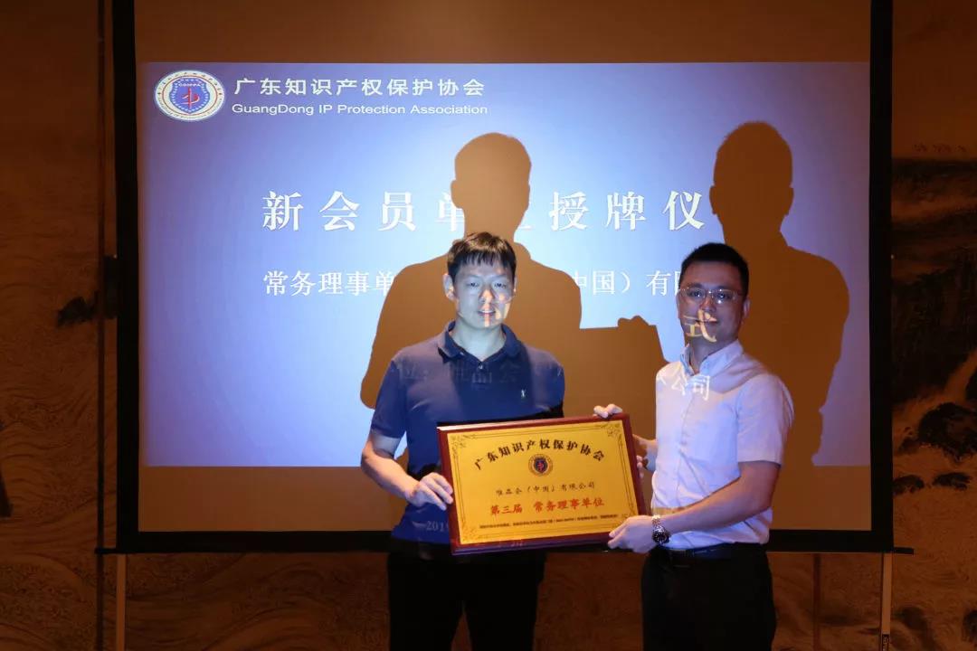 陈胜杰秘书长为新入会会员单位代表颁发会员牌匾