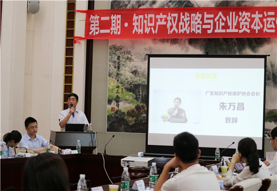 朱万昌会长在开班仪式上代表协会向广东省知识产权局领导、各授课讲师及知识产权界同仁表示欢迎和感谢。他希望学员们能从工作中抽身出来静下心学习,多思多问、善于沉淀、积极补充知识漏洞,努力提升自身水平的同时也为知识产权行业发展贡献力量。