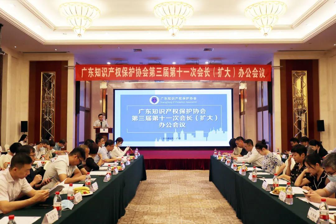 2020年8月26日上午,广东知识产权保护协会第三届第十一次会长(扩大)办公会议在广州浙江大厦召开,会长朱万昌、秘书长陈胜杰以及副会长单位代表刁俐颐、王虎、李祖林、谭英强、林少媚、梁文哲、曾志洪和常务理事单位代表等近70人出席了会议。会议讨论并审定了《2020年度上半年工作小结及下半年工作安排》,包括2020年度上半年新增会员单位情况,专家库队伍建设,省示范企业评定,省职称评审工作,协会品牌活动如典型案例报告会、沙龙活动举办,特别是疫情期间的创新服务工作等相关事宜,并讨论了协会下半年的重点工作。