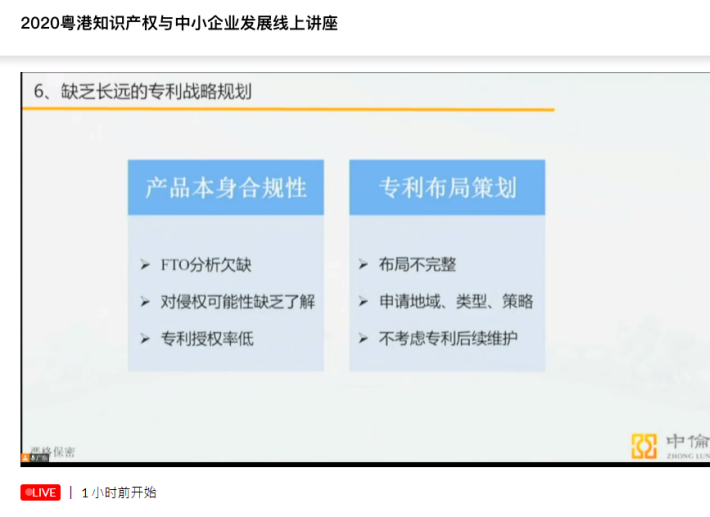 2020粤港知识产权与中小企业发展线上讲座顺利开播