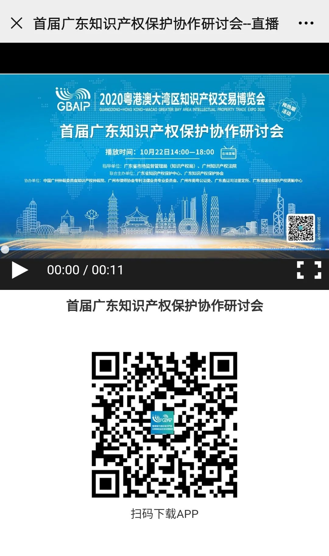 此外,本届研讨会作为2020粤港澳大湾区知识产权交易博览会的预热期活动同步在“知交会”平台线上直播。