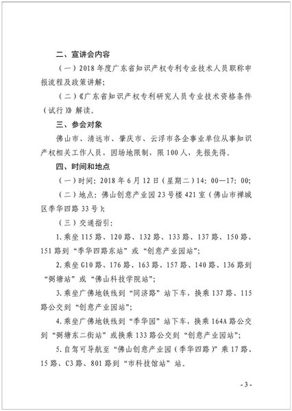 粤知职办发字〔2018〕5号-关于举办广东省知识产权专利专业技术资格申报宣讲会(佛山站)的通知