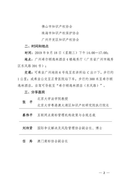 粤知保协发字〔2019〕37号-关于举办“粤港澳大湾区知识产权保护与运用研讨会”的通知
