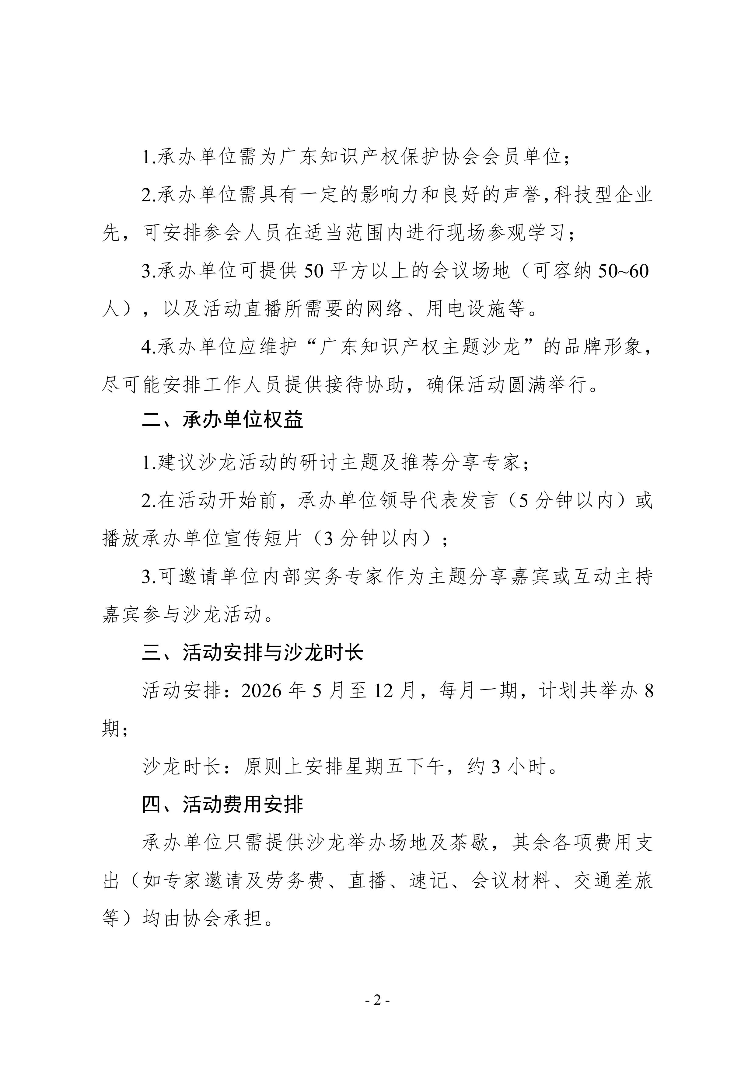 粤知保协发字〔2026〕9号-关于征集2026年度“广东知识产权主题沙龙”承办单位的通知