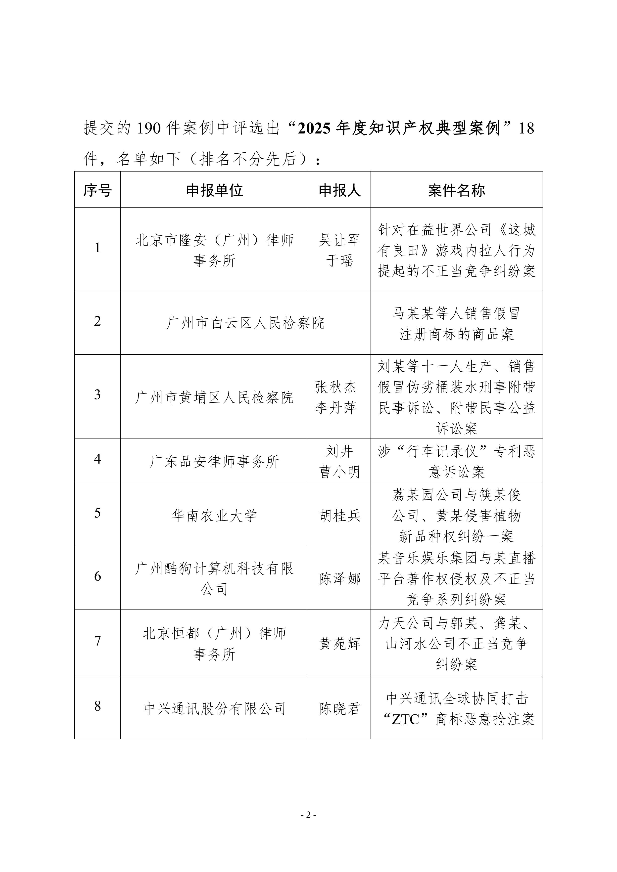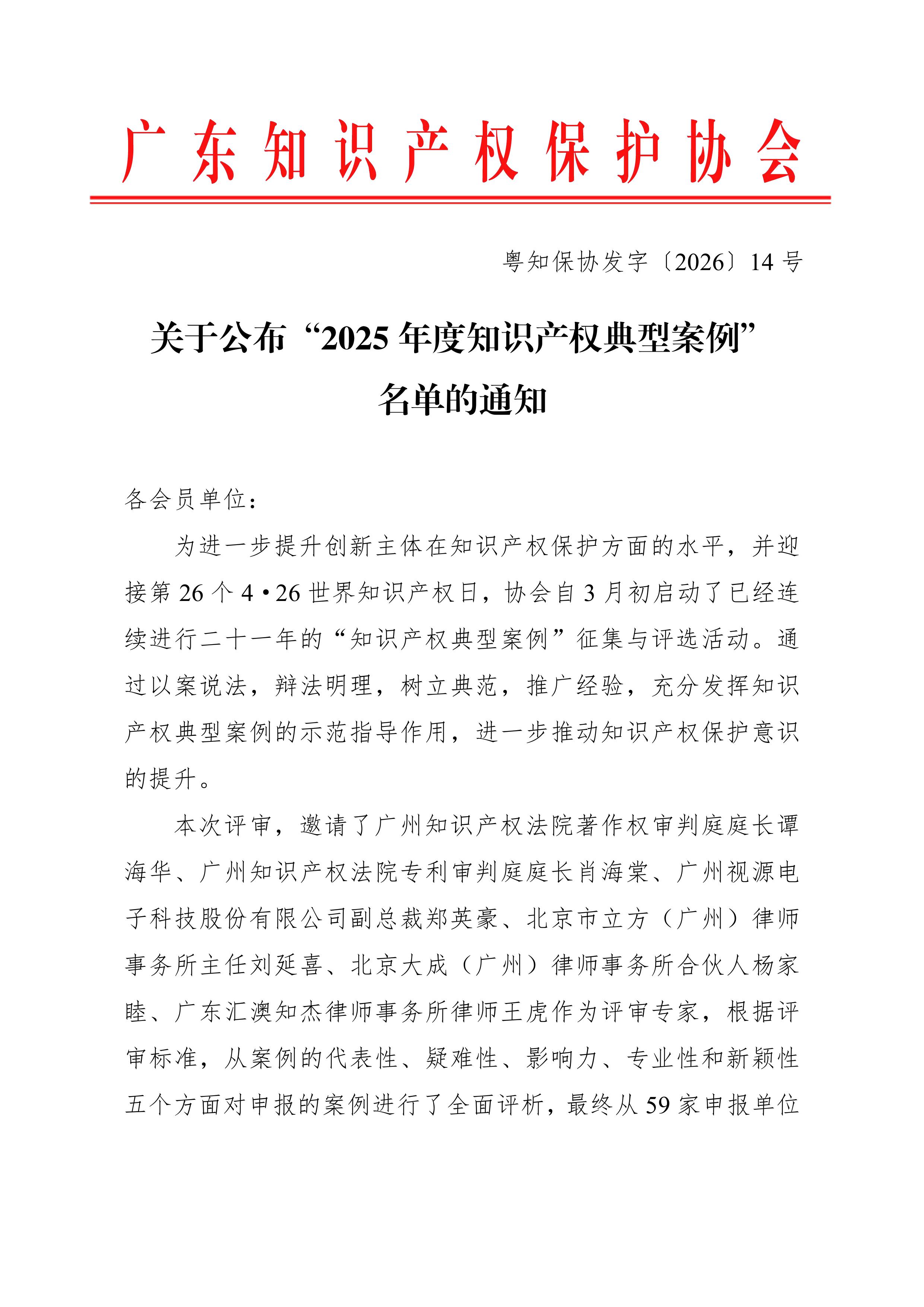 粤知保协发字〔2026〕14号-关于公布“2025年度知识产权典型案例”的通知