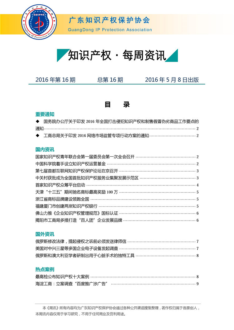 广东知识产权保护协会第16期:知识产权·每周资讯