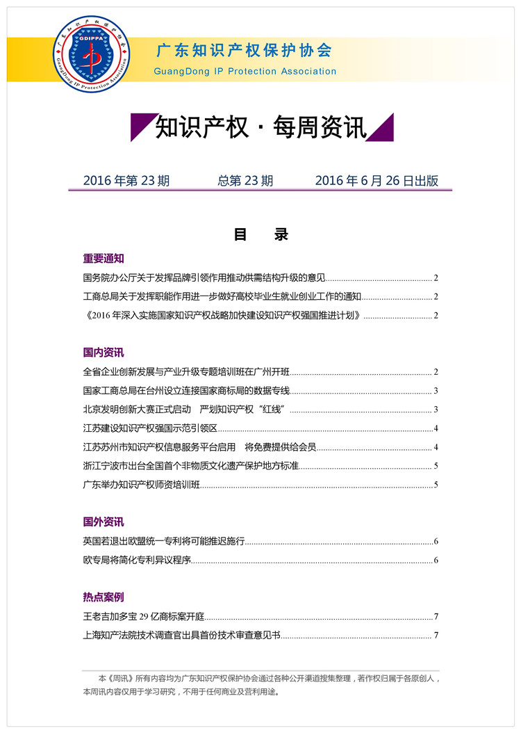 广东知识产权保护协会第23期:知识产权·每周资讯
