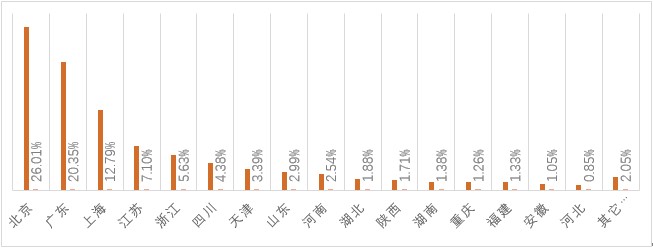由此可说明,北上广深地区的薪资水平普遍在全国范围内领先,月度薪资高于内陆城市薪资水平约2000元左右,同时也反应北上广深地区的知识产权行业发展较好,更能吸引专业人才。